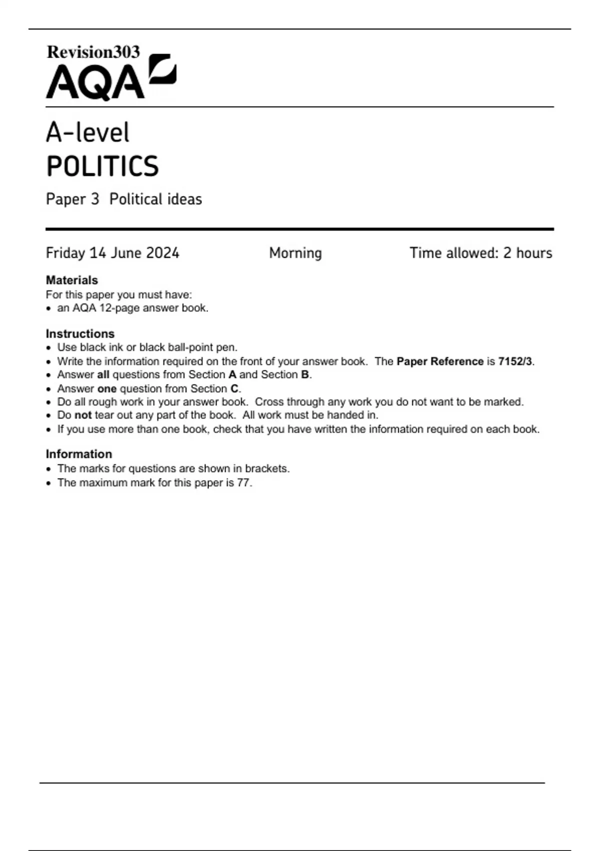 • The maximum mark for this paper is 77.