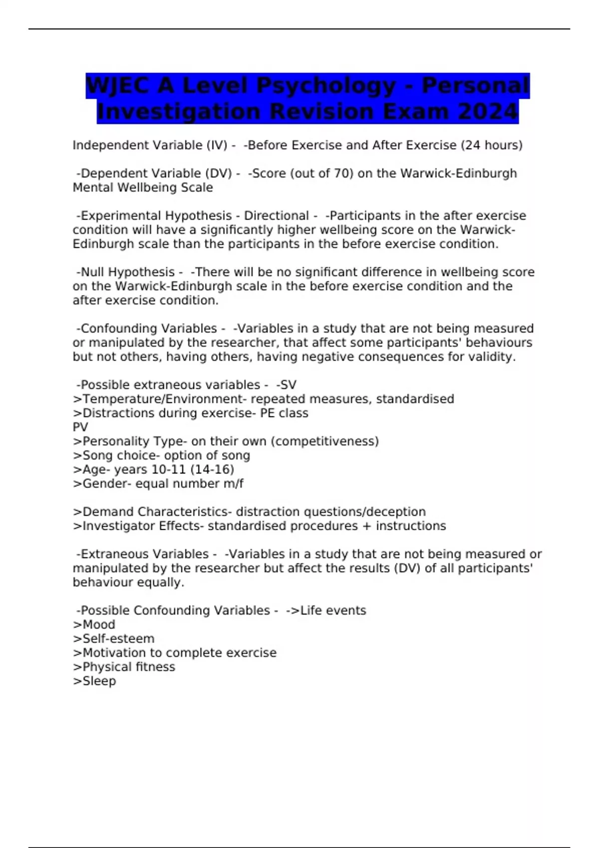 WJEC A Level Psychology - Personal