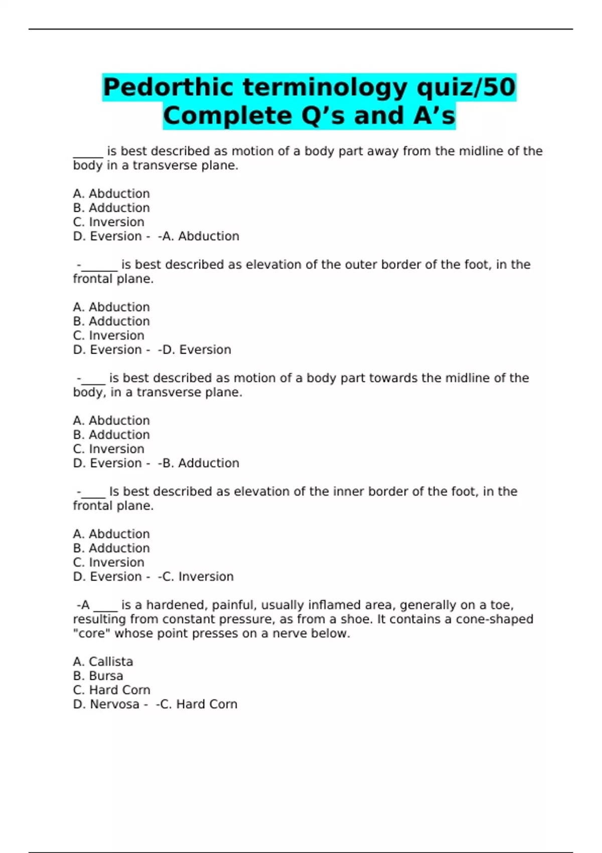 Pedorthic terminology quiz/50