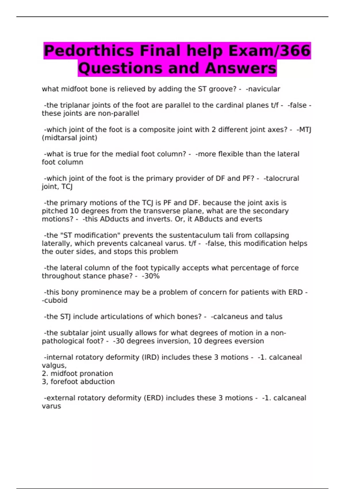 Pedorthics Final help Exam/366 Questions and Answers