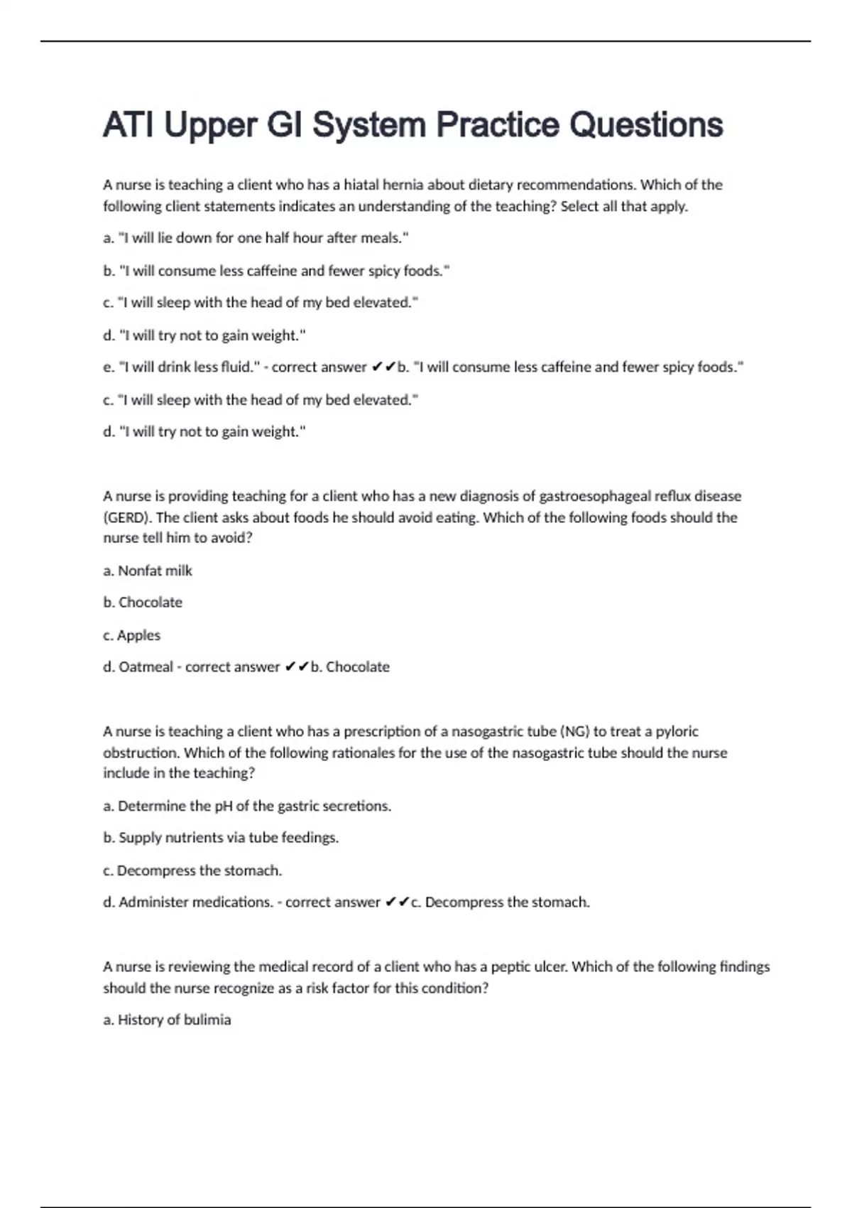 d. Administer medications. - correct answer ✔✔c. Decompress the stomach.