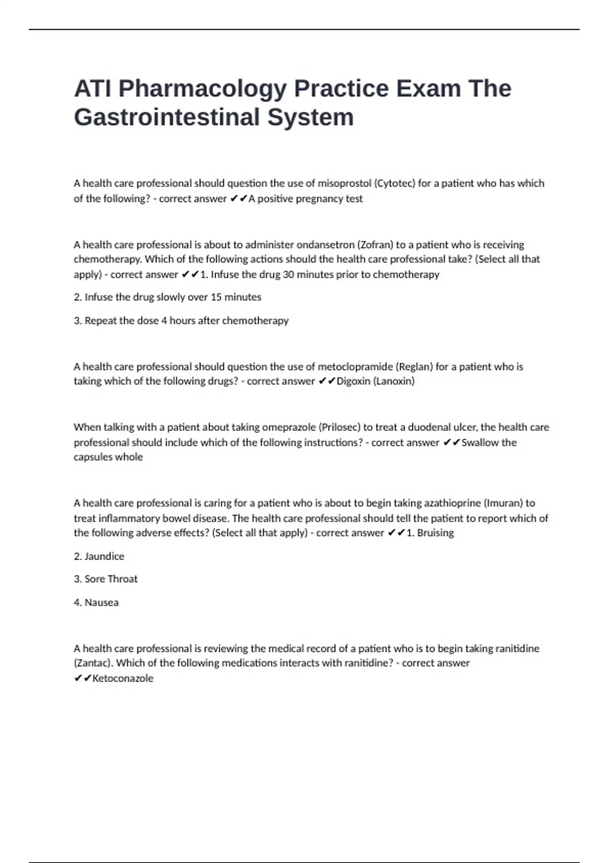 ATI Pharmacology Practice Exam The Gastrointestinal System correctly answered to pass