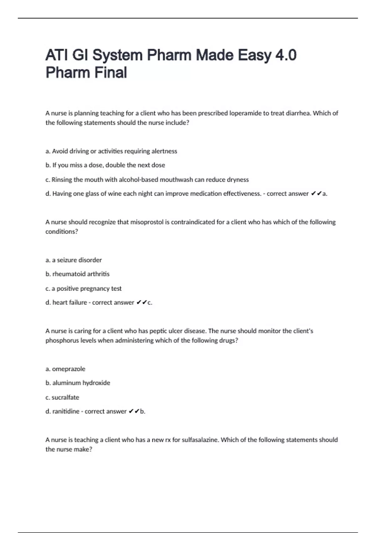 d. ranitidine - correct answer ✔✔b.