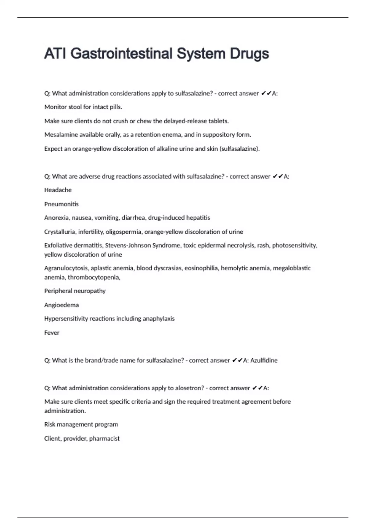 ATI Gastrointestinal System Drugs questions with complete solutions A+ rated