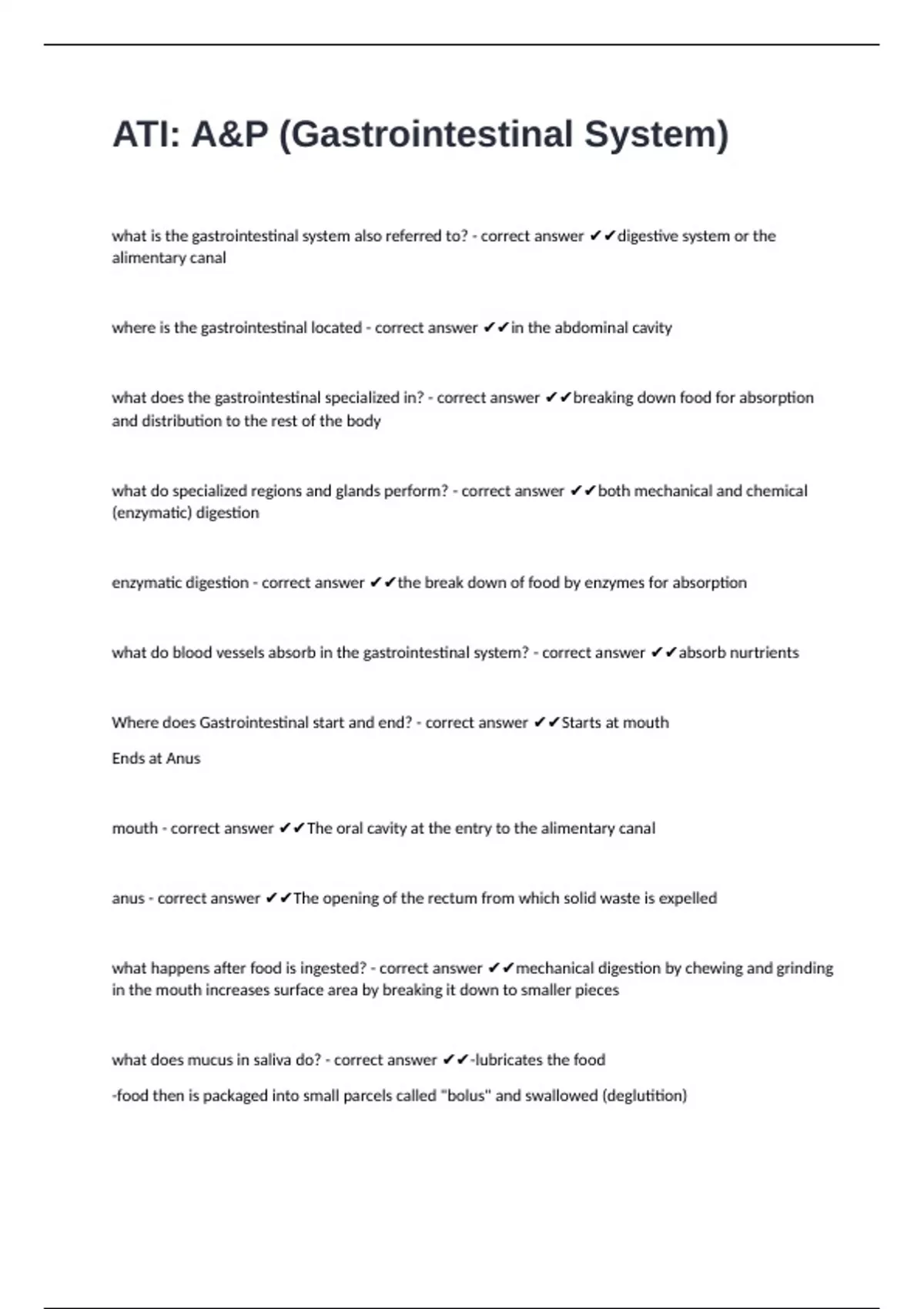 ATI: A&P (Gastrointestinal System) questions well answered to pass