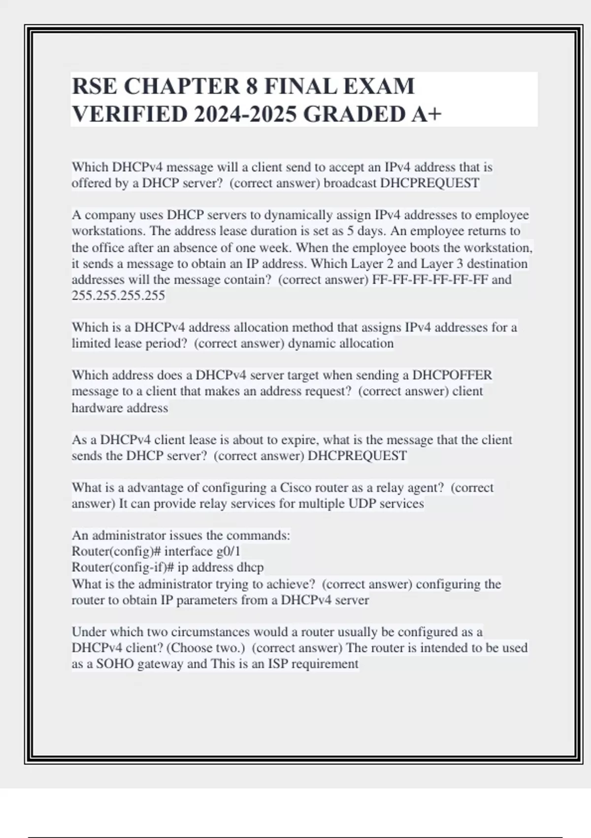 offered by a DHCP server? (correct answer) broadcast DHCPREQUEST