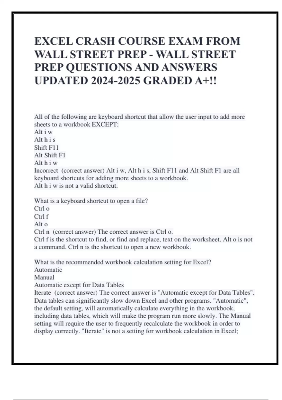 EXCEL CRASH COURSE EXAM FROM WALL STREET PREP - WALL STREET PREP QUESTIONS AND ANSWERS UPDATED GRADED A+!!