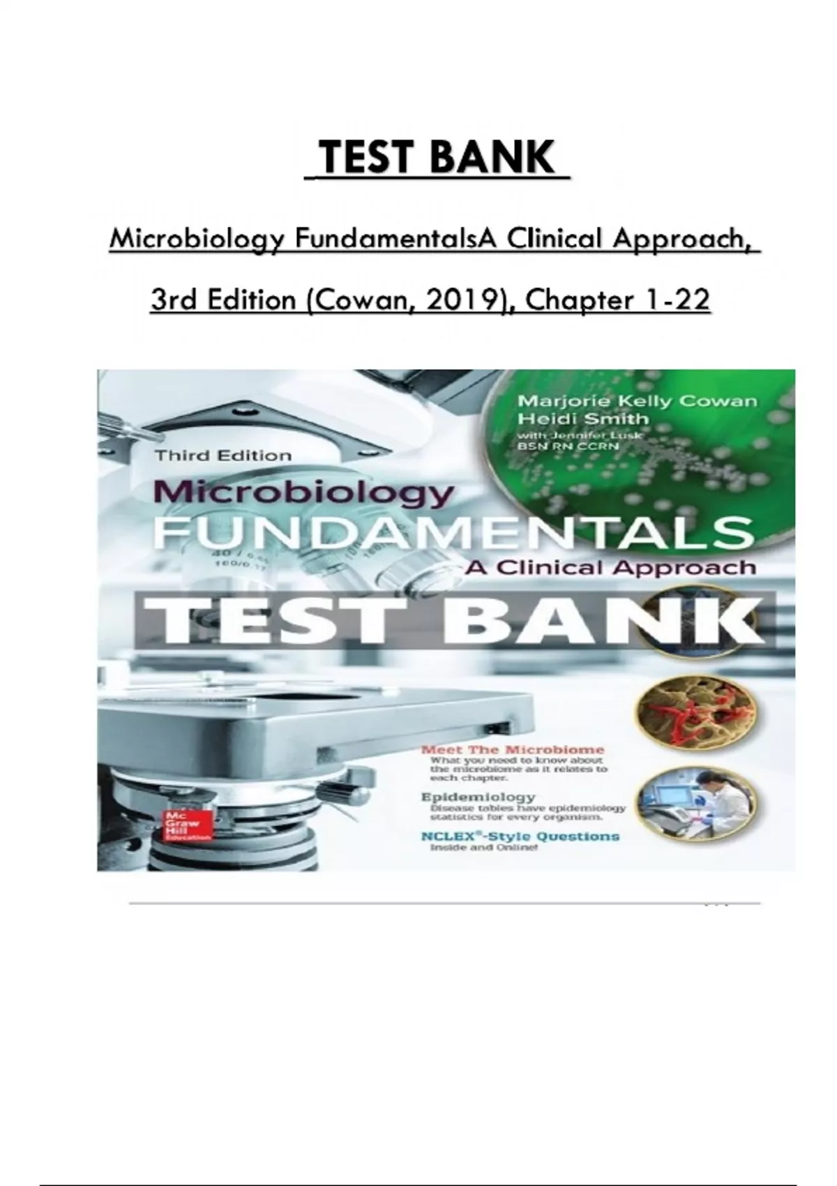Test Bank For Microbiology Fundamentals A Clinical Approach, 3rd Edition by Cowan, Consists of 22 Complete Chapters, ISBN: 978-1259709227