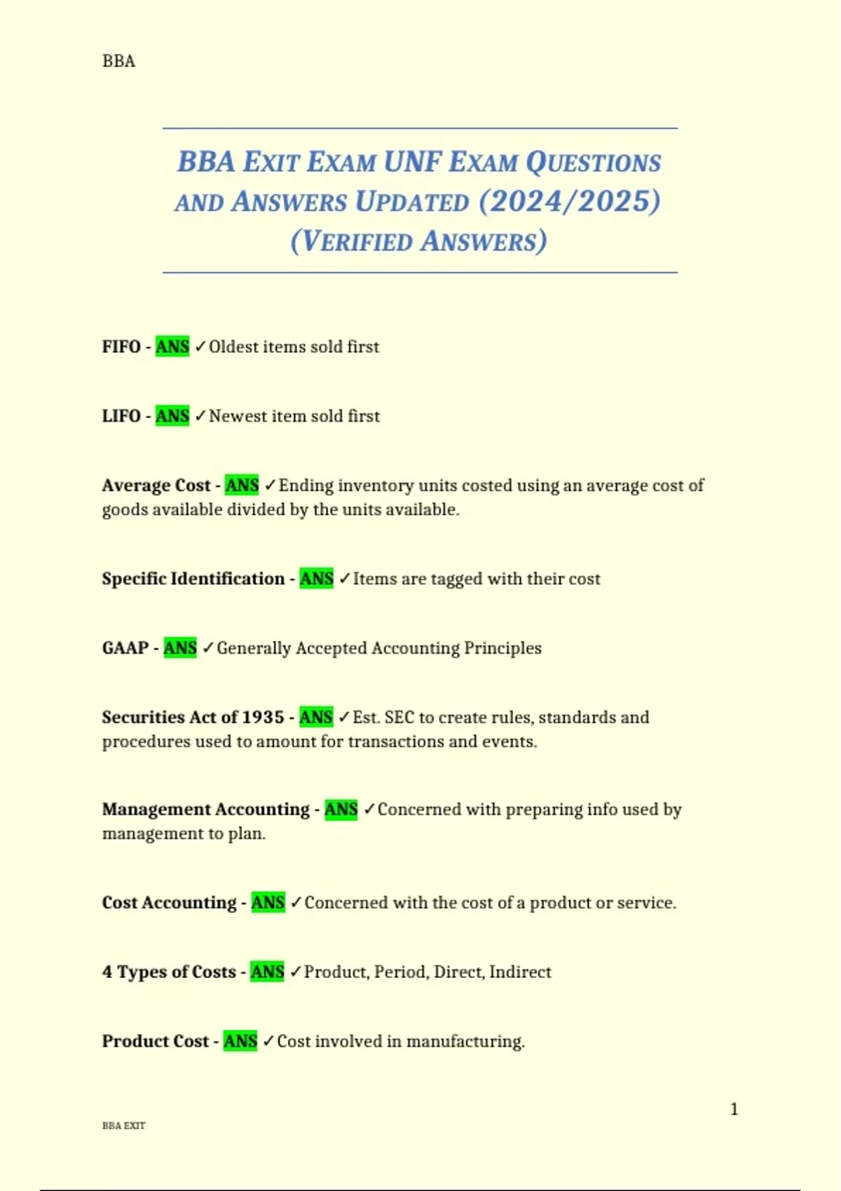 BBA EXIT EXAM UNF EXAM QUESTIONS