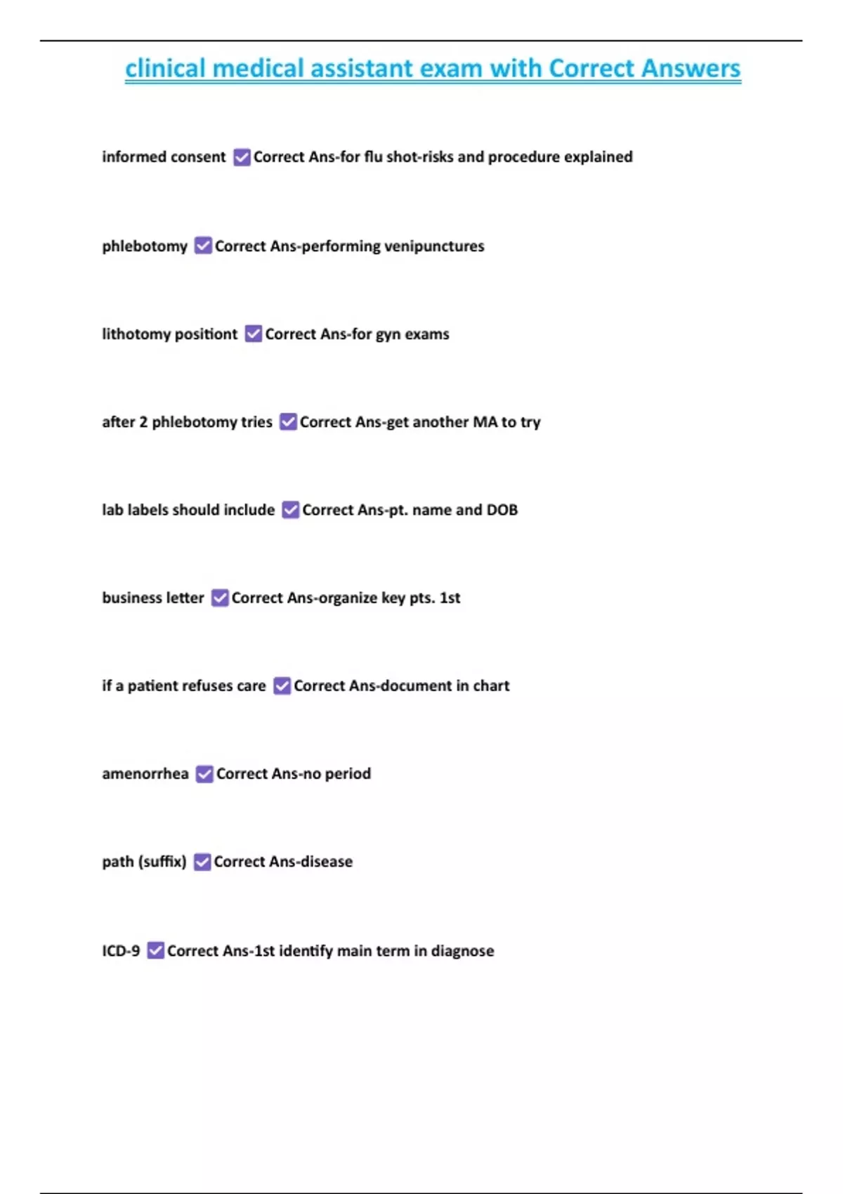 , clinical medical assistant exam with Correct Answers
