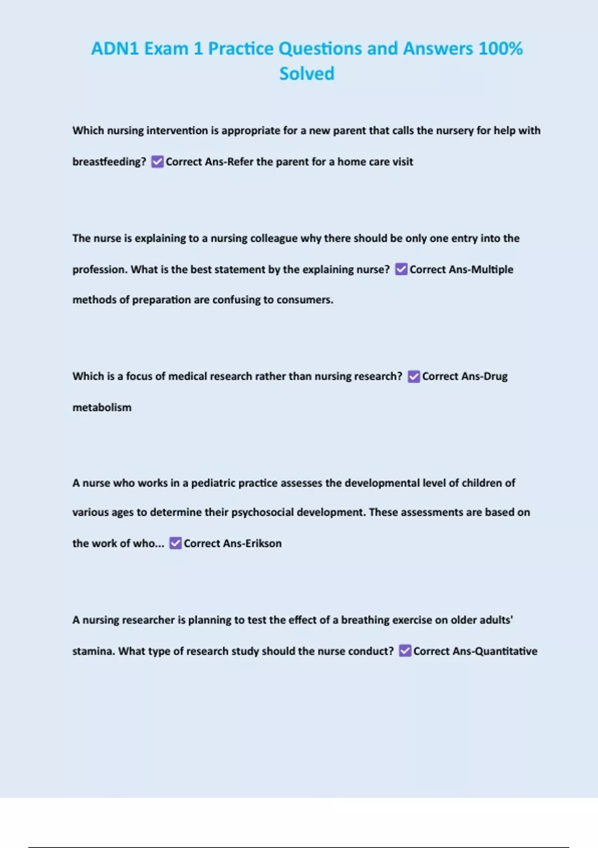 , ADN1 Exam 1 Practice Questions and Answers 100%