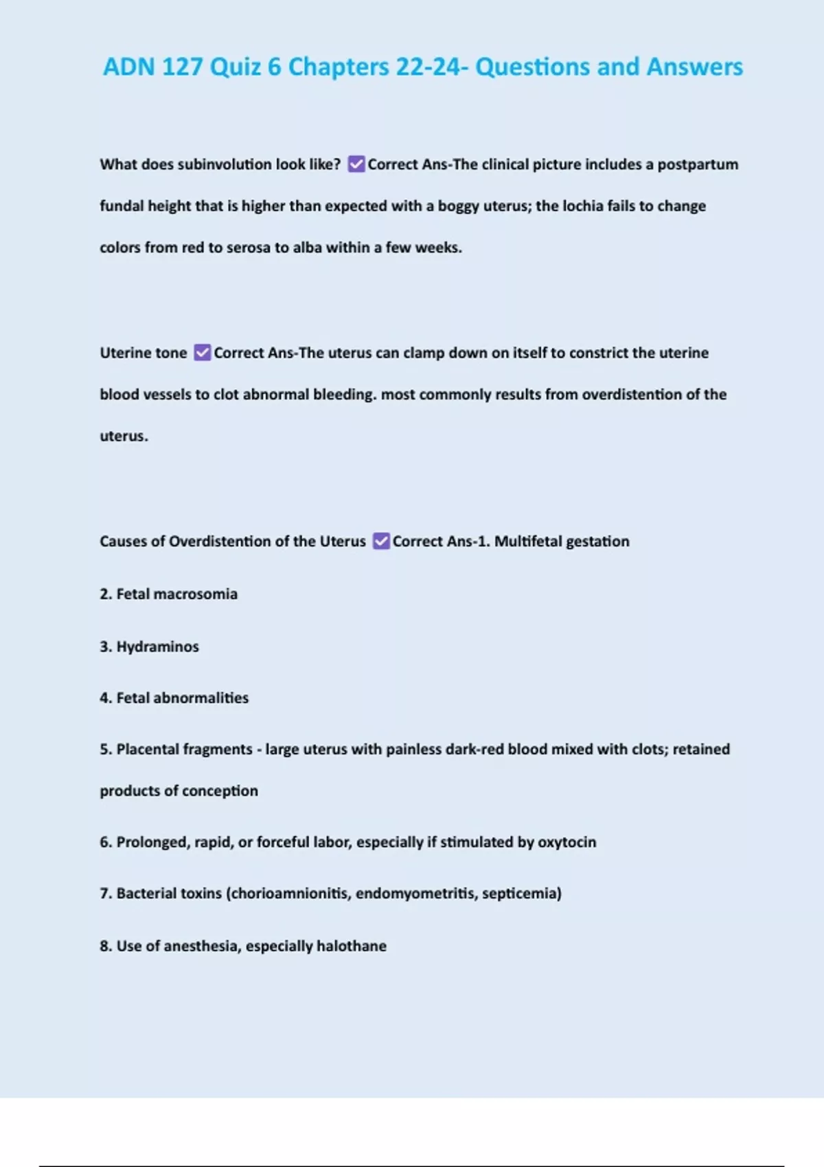 Causes of Overdistention of the Uterus Correct Ans-1. Multifetal gestation
