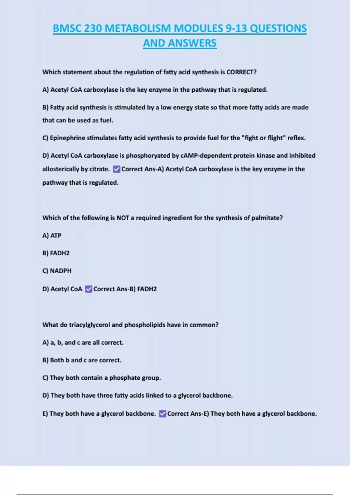 BMSC 230 METABOLISM MODULES 9-13 QUESTIONS AND ANSWERS