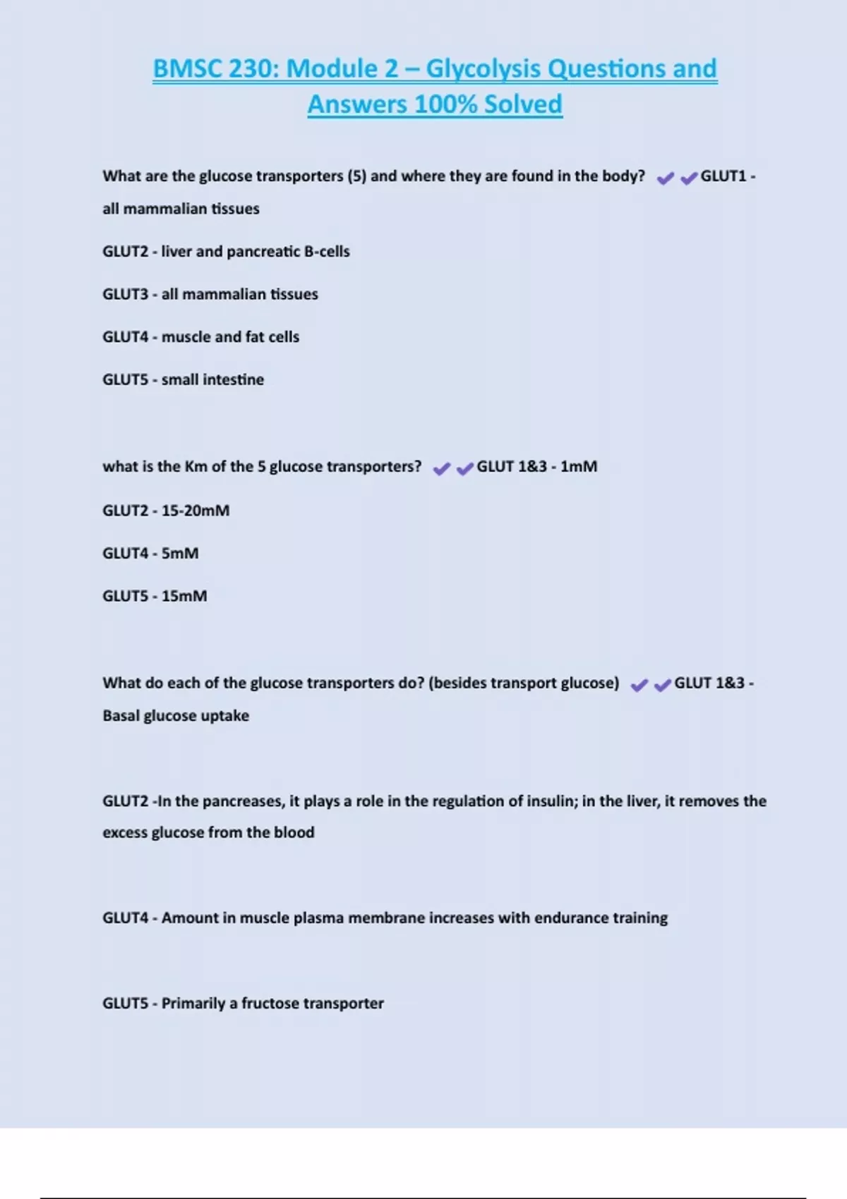 , BMSC 230: Module 2 – Glycolysis Questions and