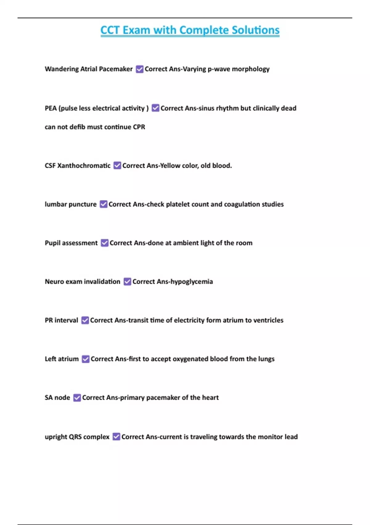 PACKAGE-::CCT EXAMS( CERTIFIED CARDIOGRAPHY TECH)- 100% SOLVED