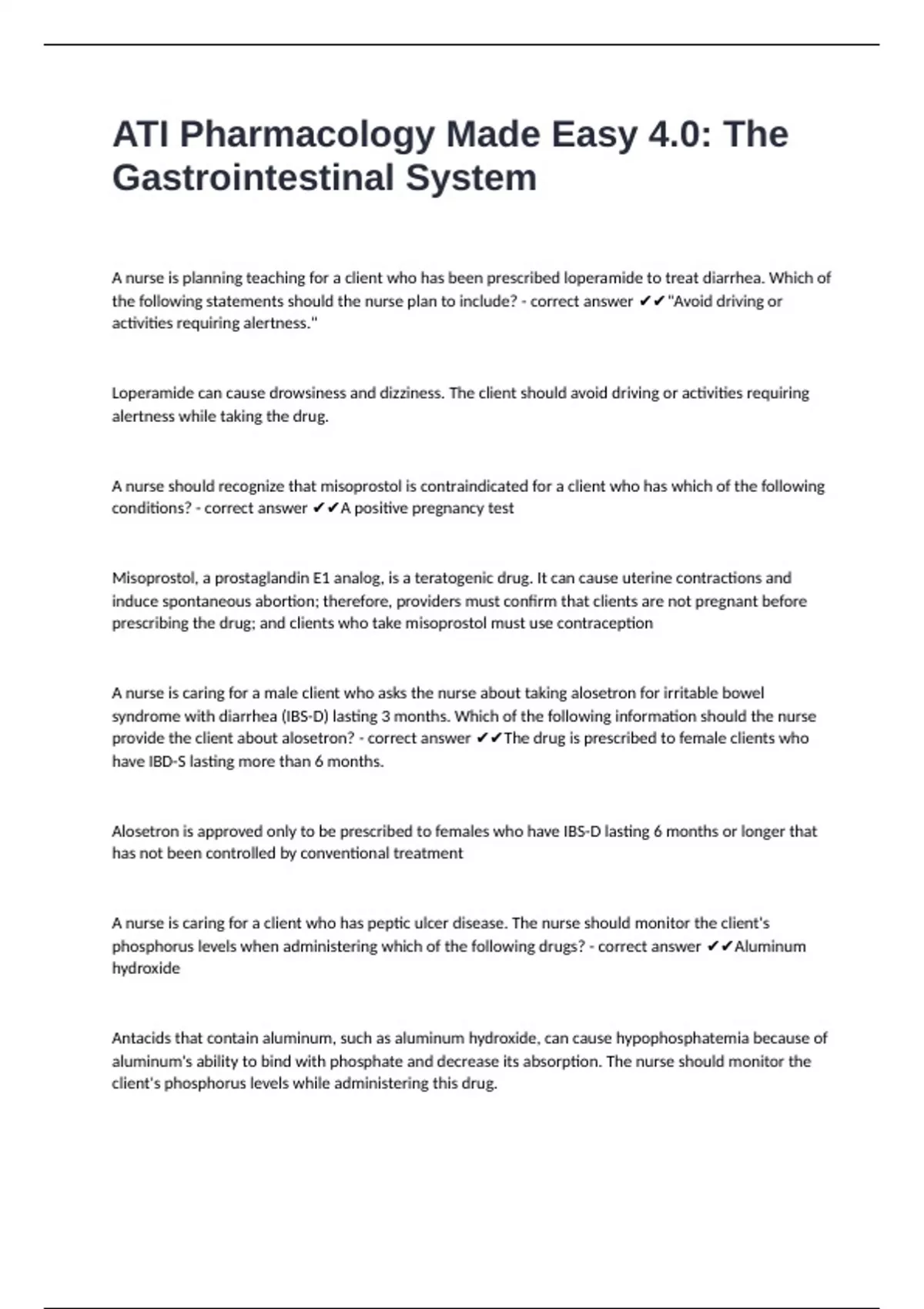 ATI Pharmacology Made Easy 4.0: The Gastrointestinal System well answered to pass