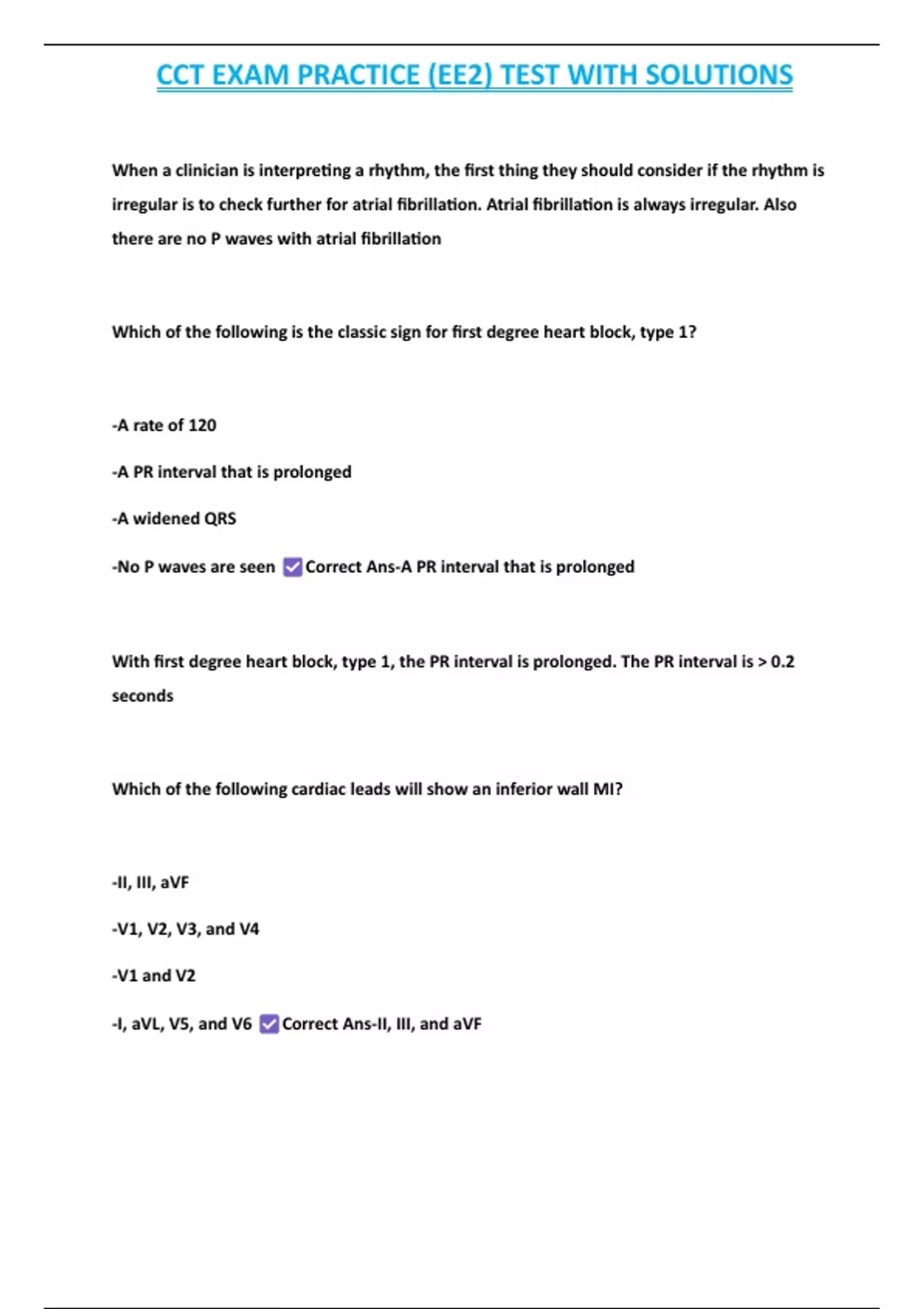 PACKAGE-::CCT EXAMS( CERTIFIED CARDIOGRAPHY TECH)- 100% SOLVED