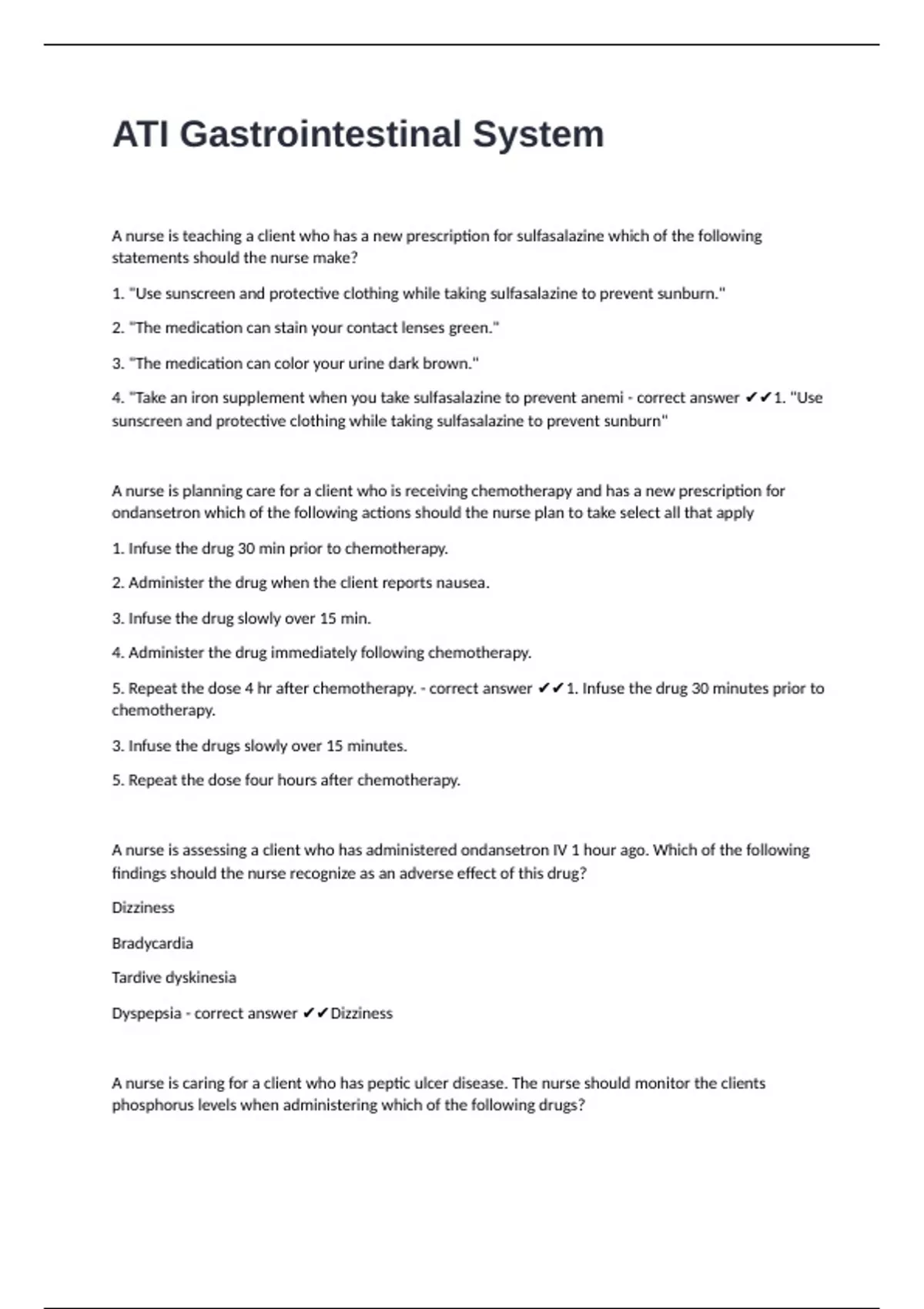 4. "Take an iron supplement when you take sulfasalazine to prevent anemi - correct answer ✔✔1. "Use