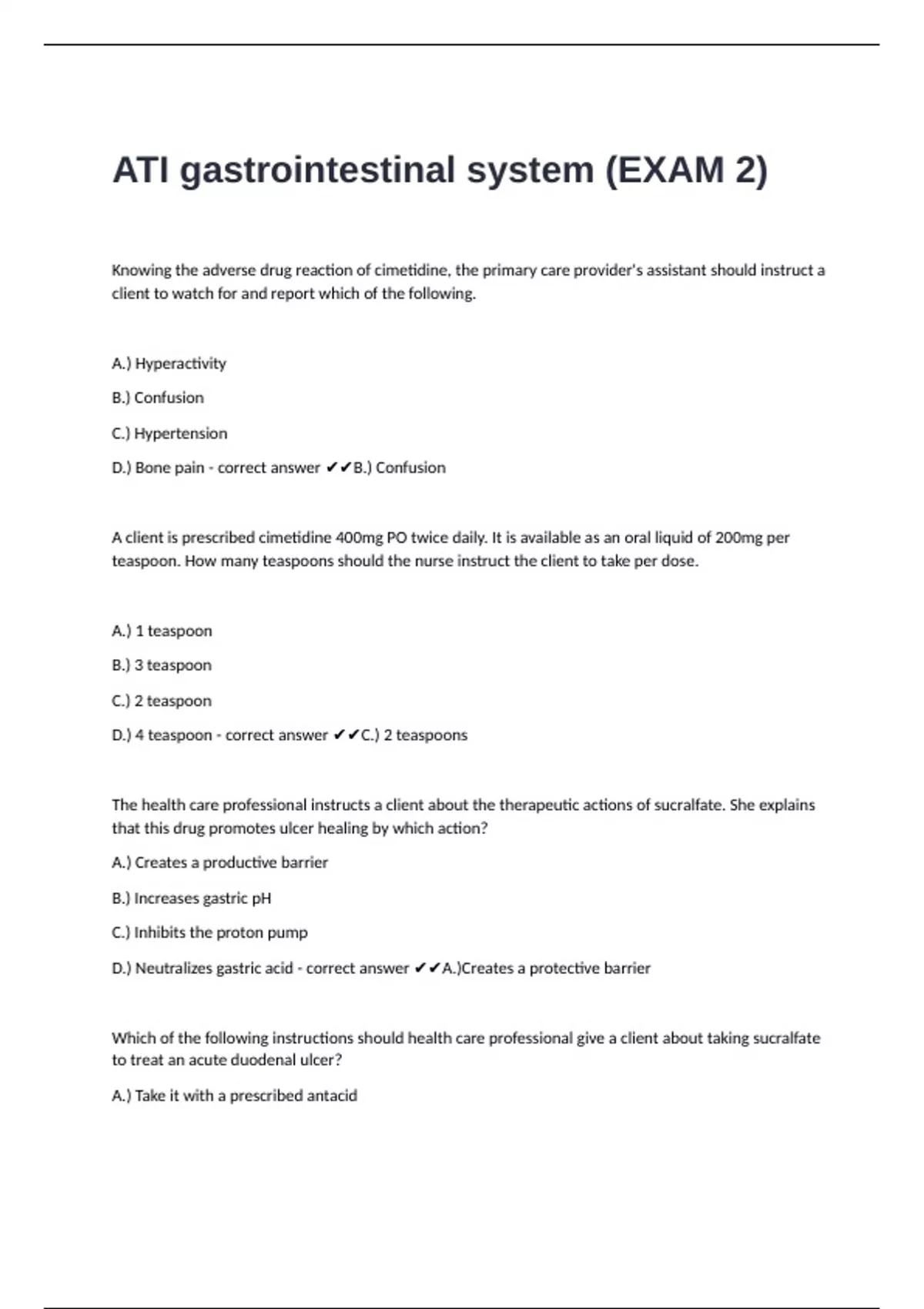 ATI gastrointestinal system (EXAM 2) questions n answers rated A+ already passed