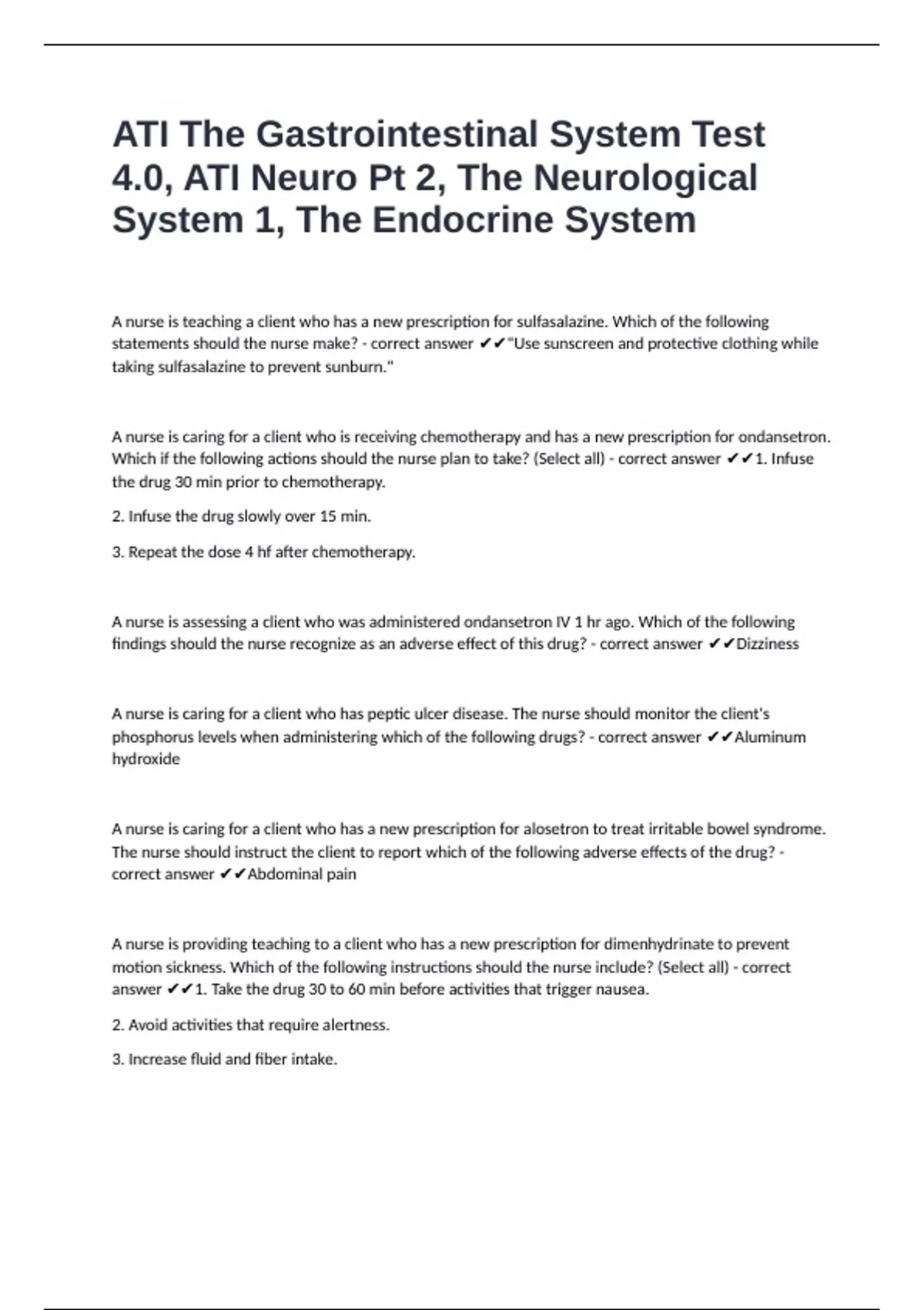 the following statements should the nurse plan to include? - correct answer ✔✔"Avoid driving or