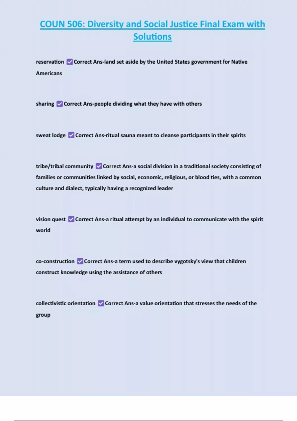 COUN 506: Diversity and Social Justice Final Exam with Solutions