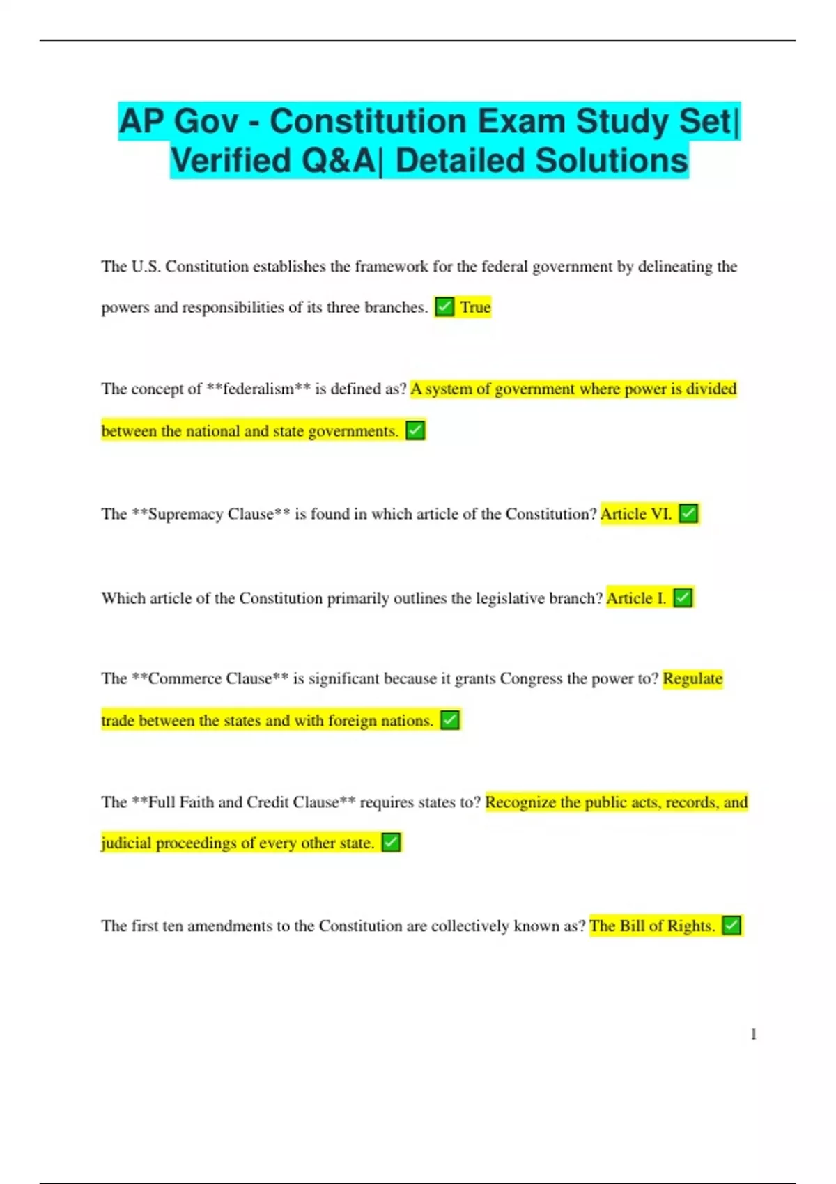 The **Supremacy Clause** is found in which article of the Constitution? Article VI.