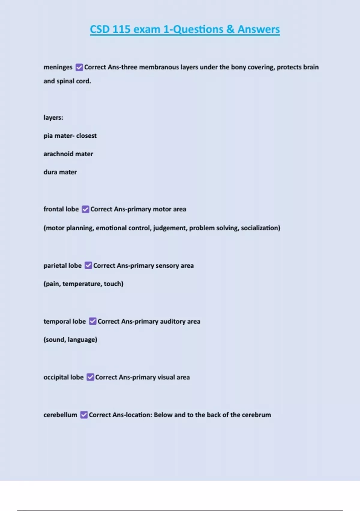meninges Correct Ans-three membranous layers under the bony covering, protects brain