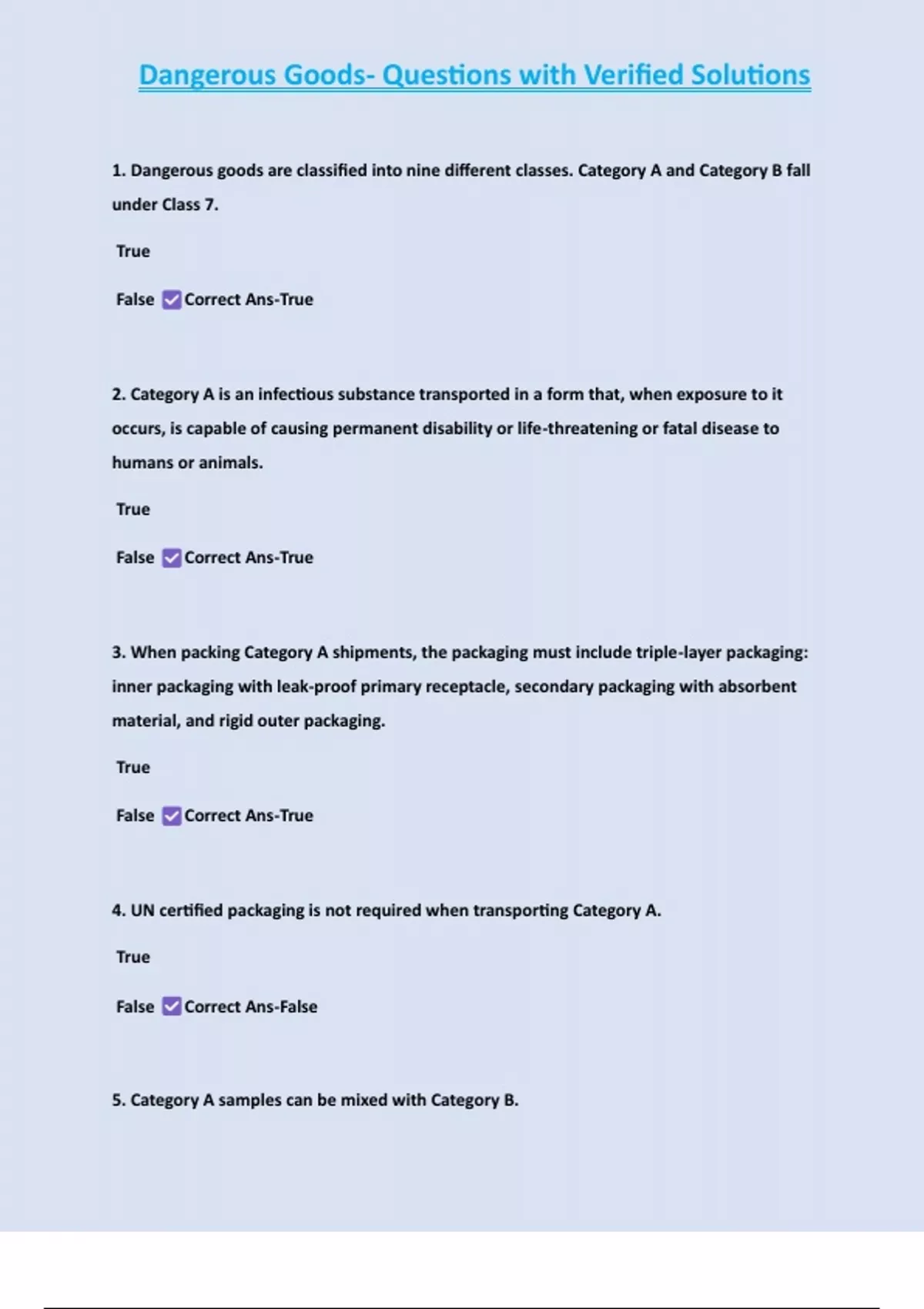 1. Dangerous goods are classified into nine different classes. Category A and Category B fall