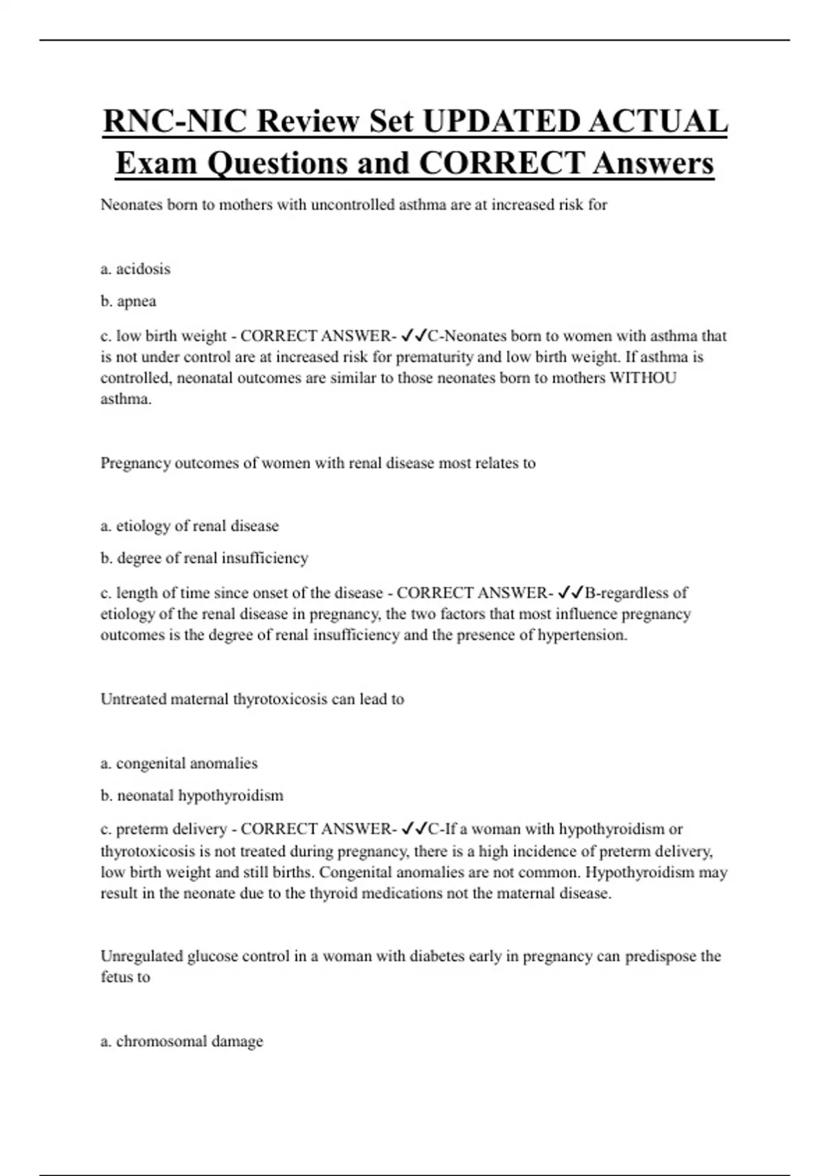 c. low birth weight - CORRECT ANSWER- ✔✔C-Neonates born to women with asthma that
