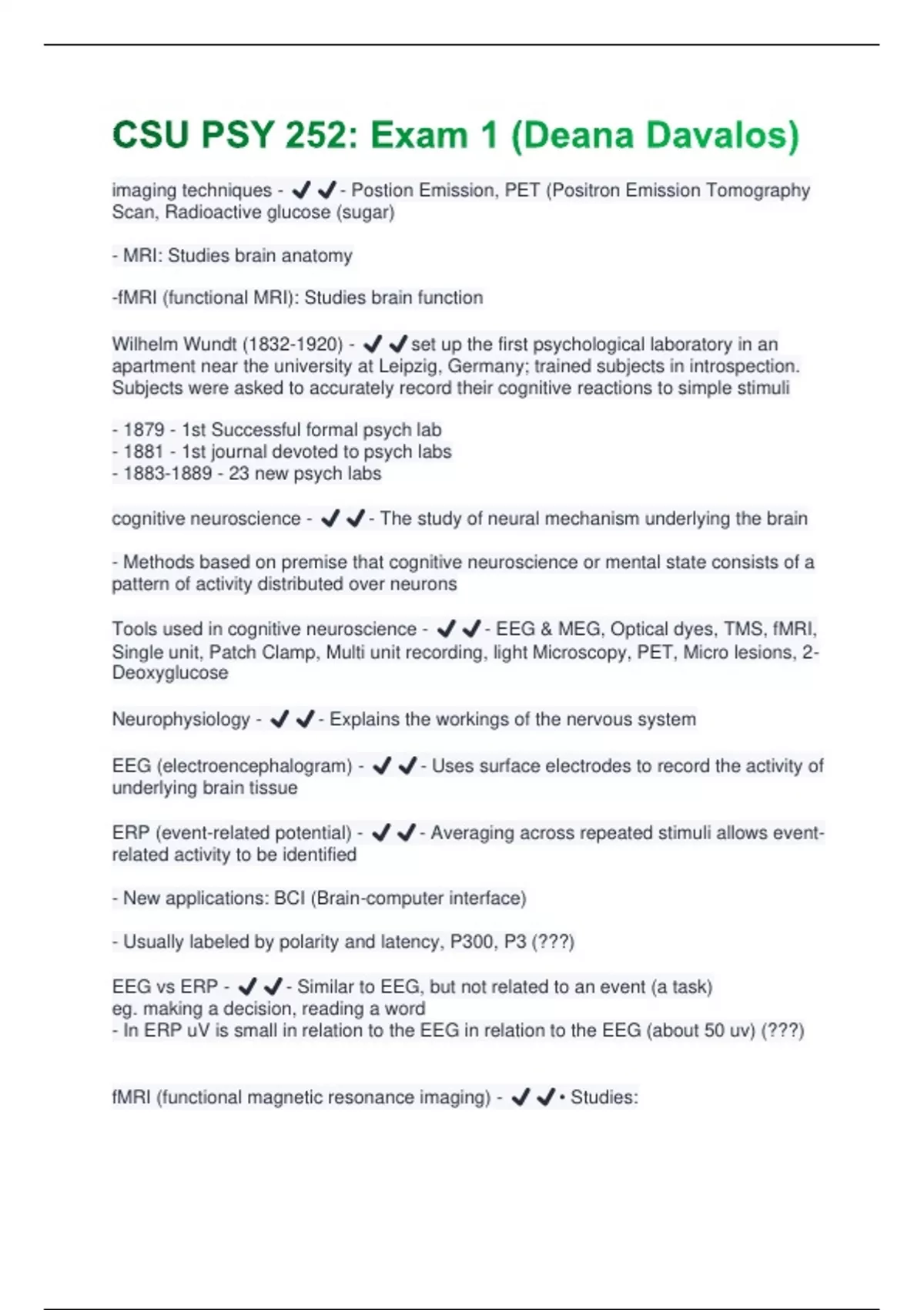 ERP (event-related potential) - ✔️✔️- Averaging across repeated stimuli allows event-