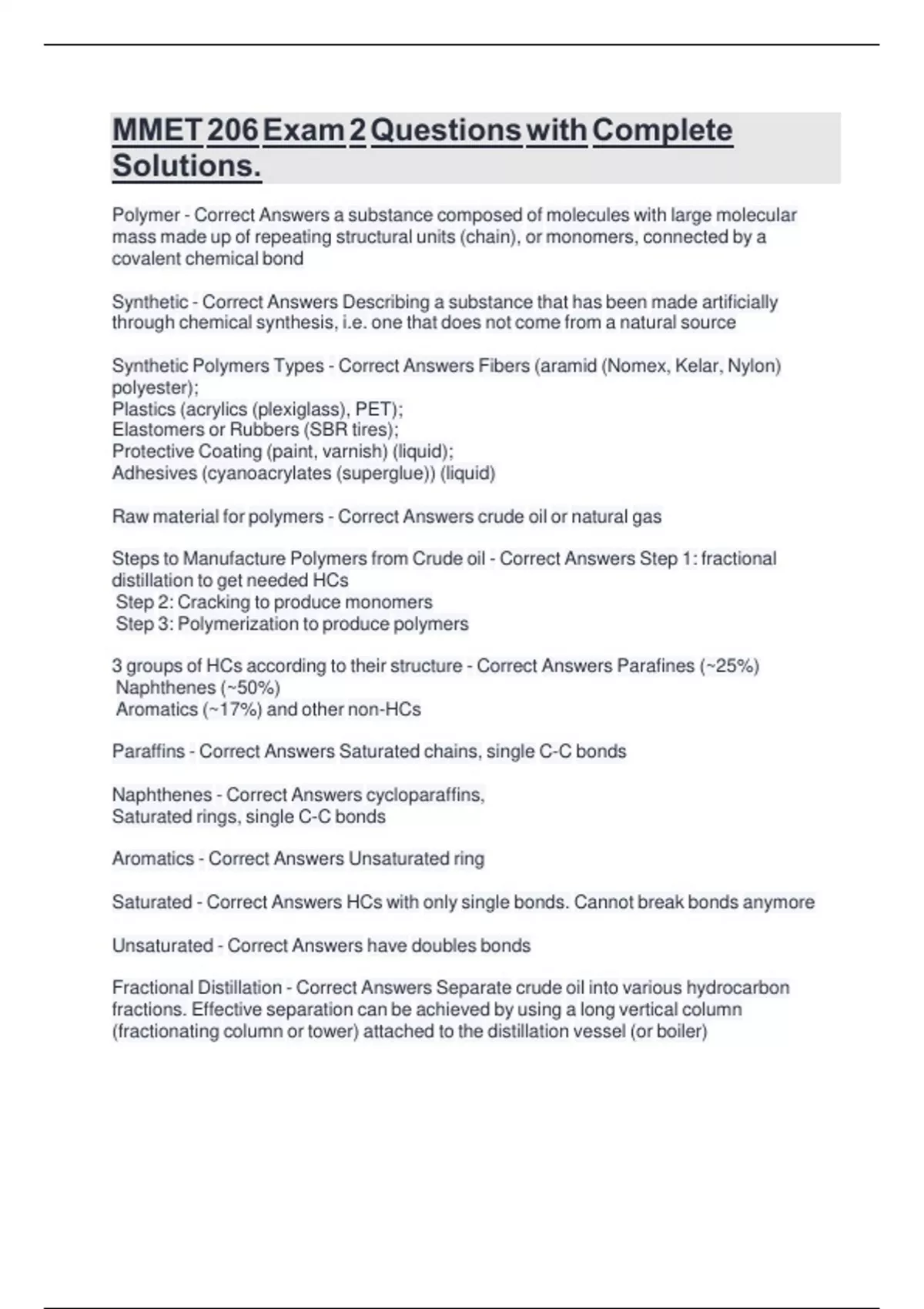 Raw material for polymers - Correct Answers crude oil or natural gas