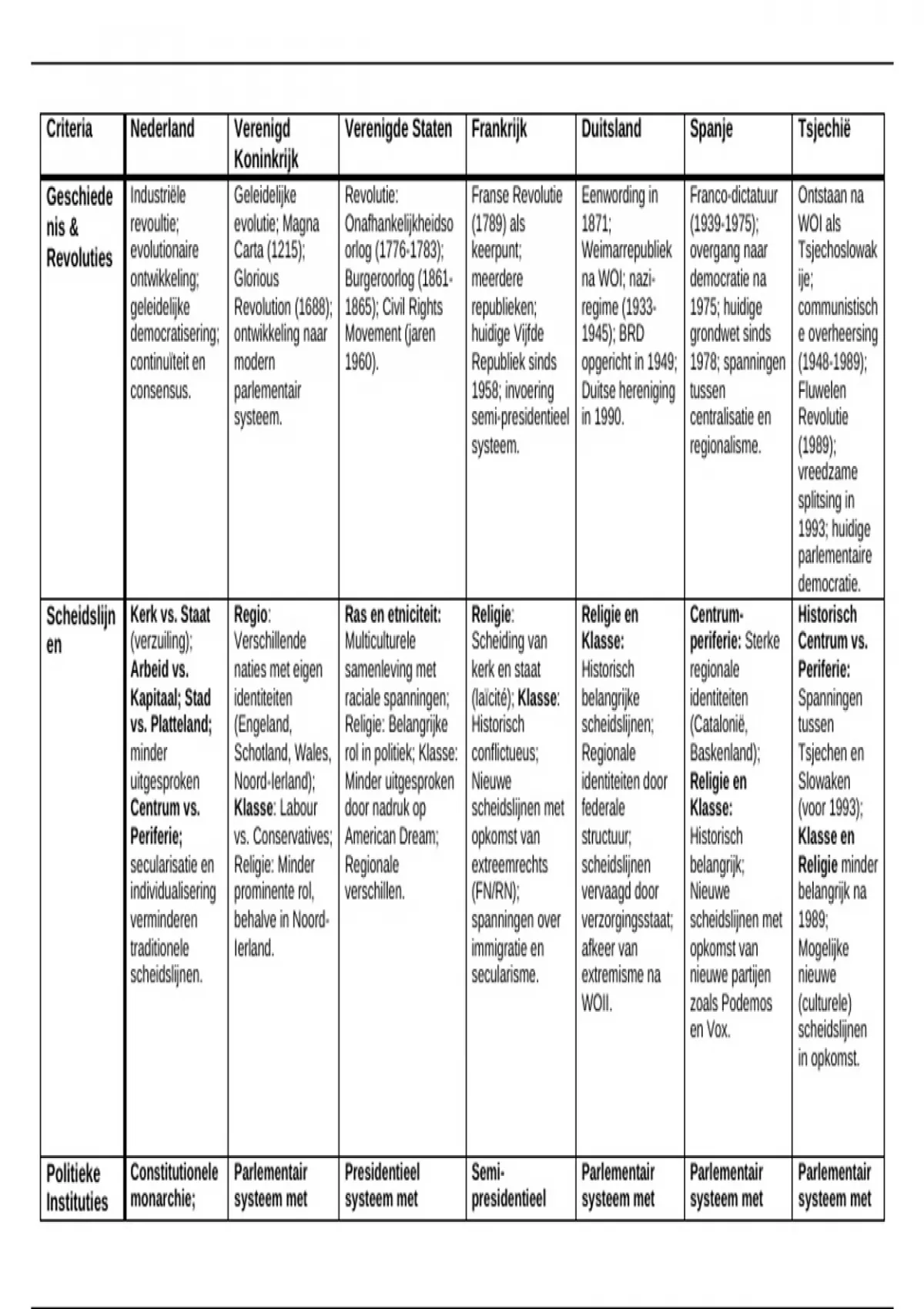 Revoluties evolutionaire Carta (1215); orlog (1776-1783); keerpunt; Weimarrepubliek overgang naar Tsjechoslowak