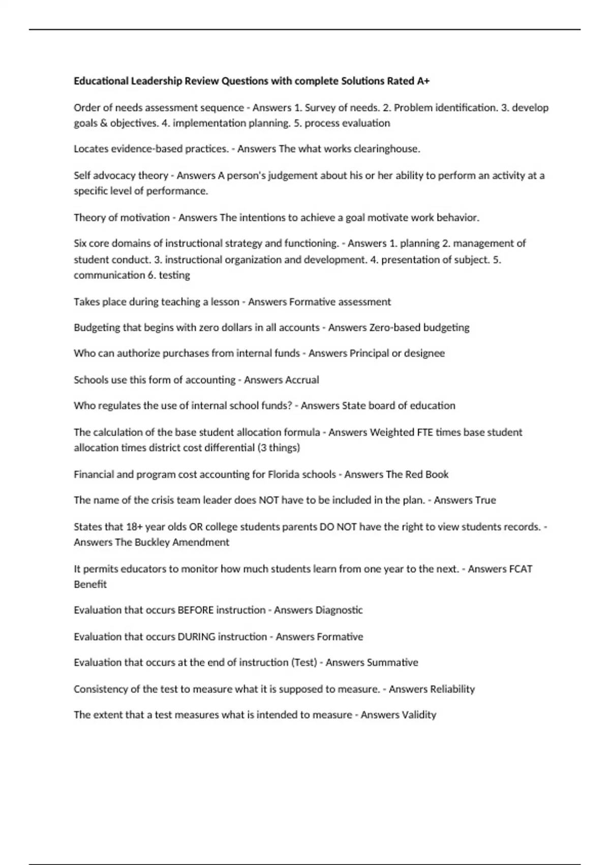 Evaluation that occurs at the end of instruction (Test) - Answers Summative