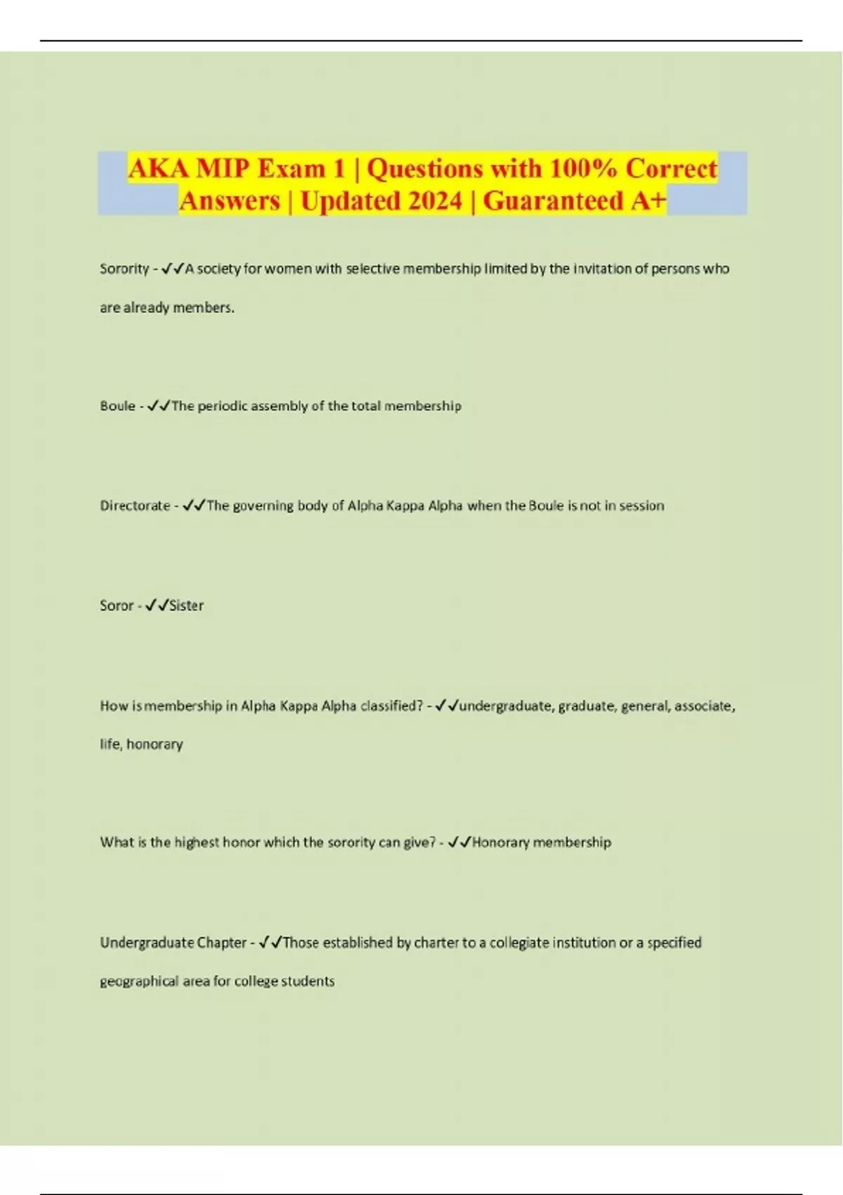 AKA MIP Exam 1 | Questions with 100% Correct Answers | Updated 2024 | Guaranteed A+