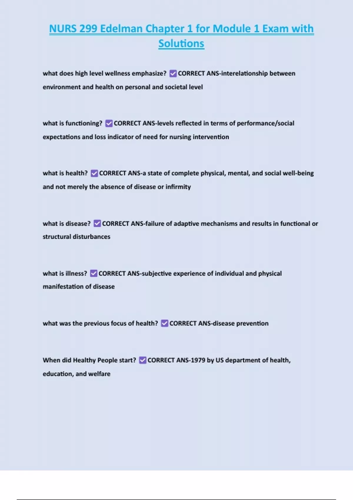 NURS 299 Edelman Chapter 1 for Module 1 Exam with Solutions