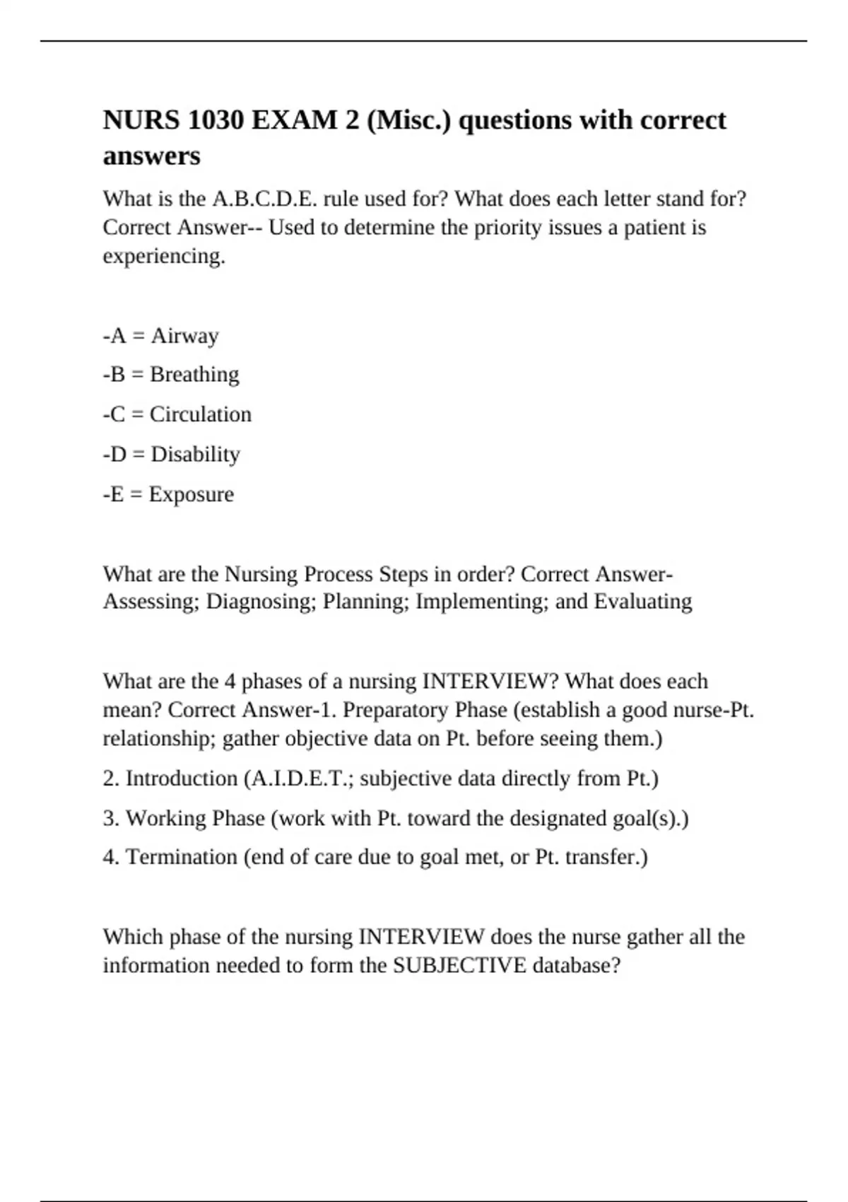 mean? Correct Answer-1. Preparatory Phase (establish a good nurse-Pt.