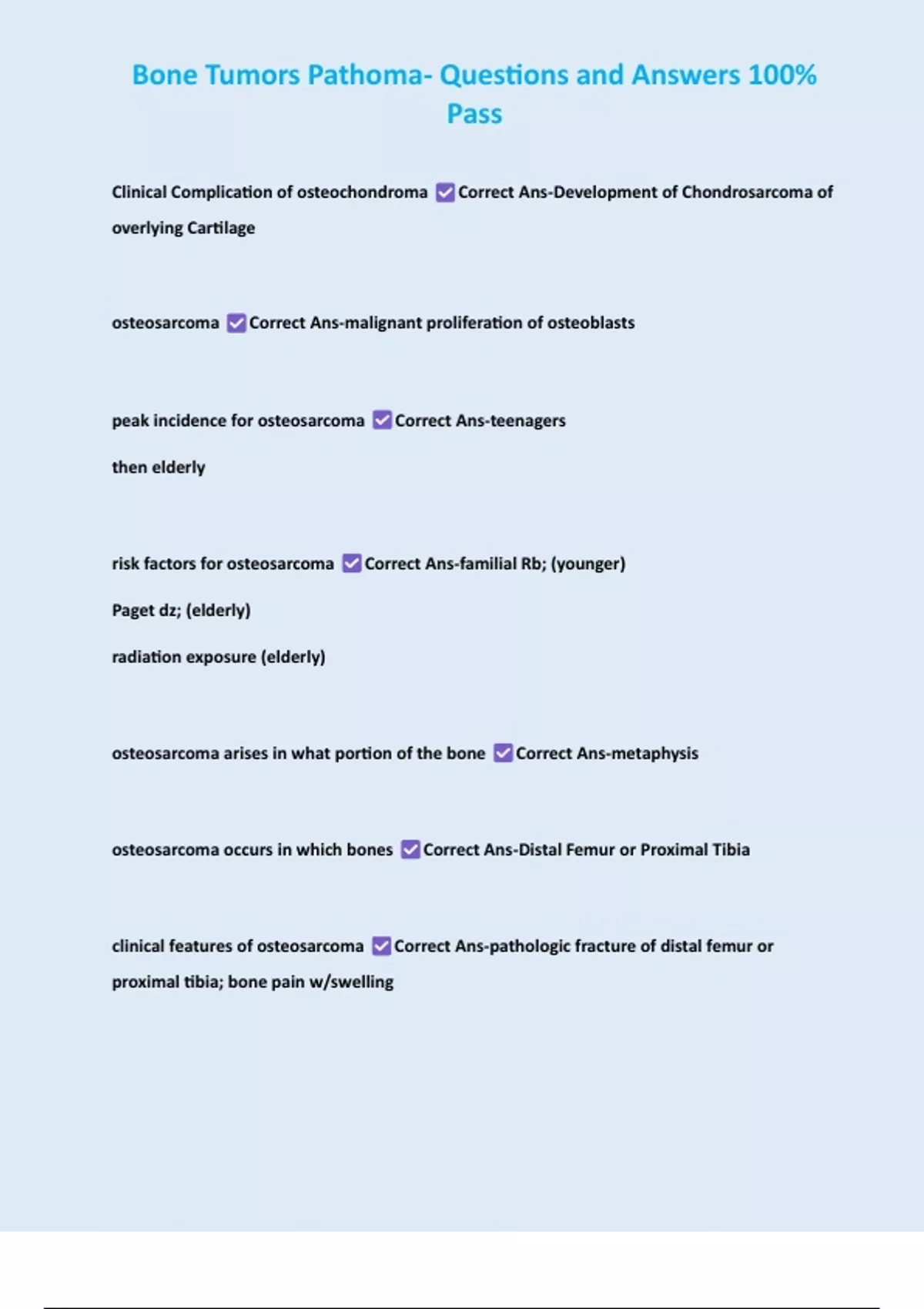 , Bone Tumors Pathoma- Questions and Answers 100%