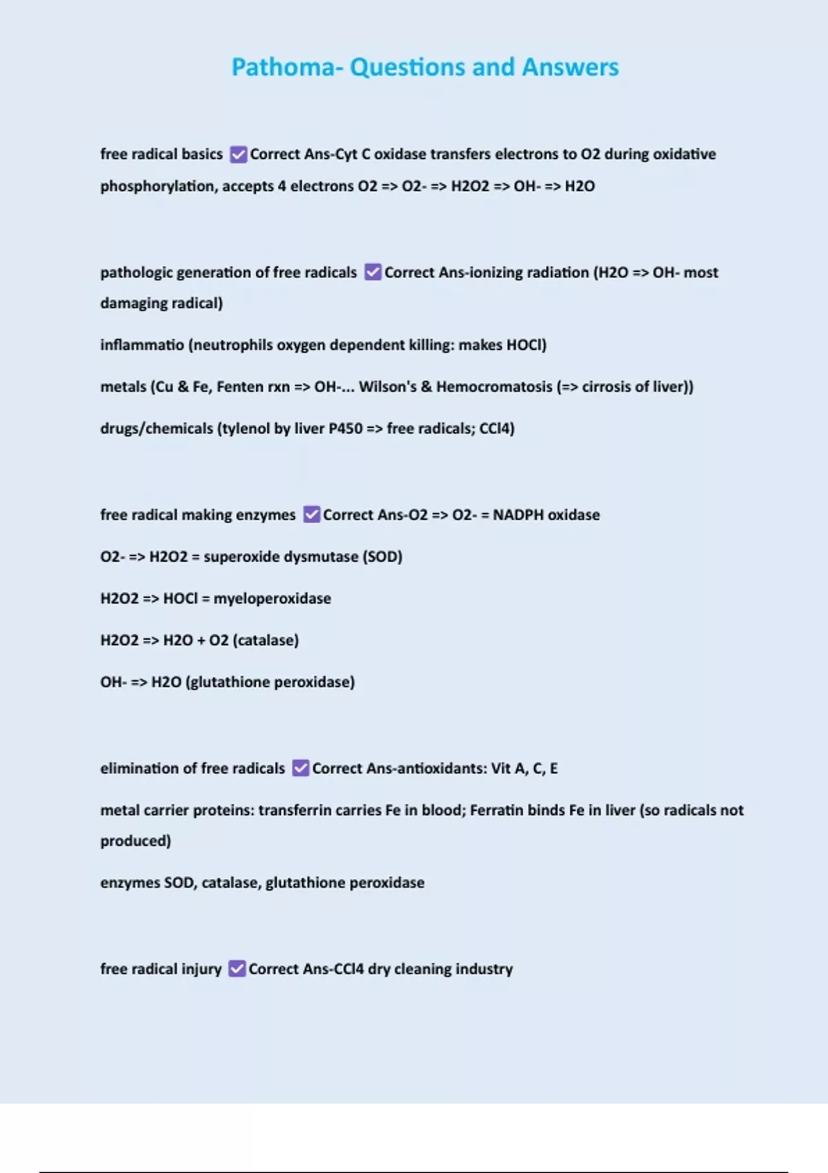 pathologic generation of free radicals Correct Ans-ionizing radiation (H2O => OH- most