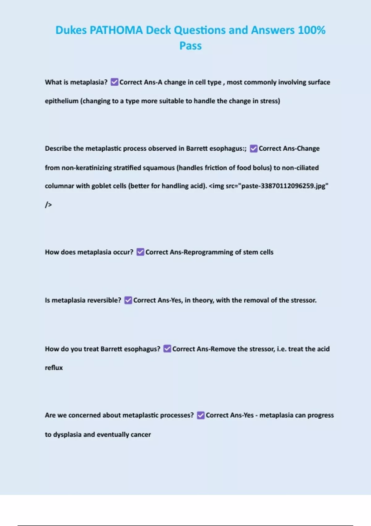 , Dukes PATHOMA Deck Questions and Answers 100%