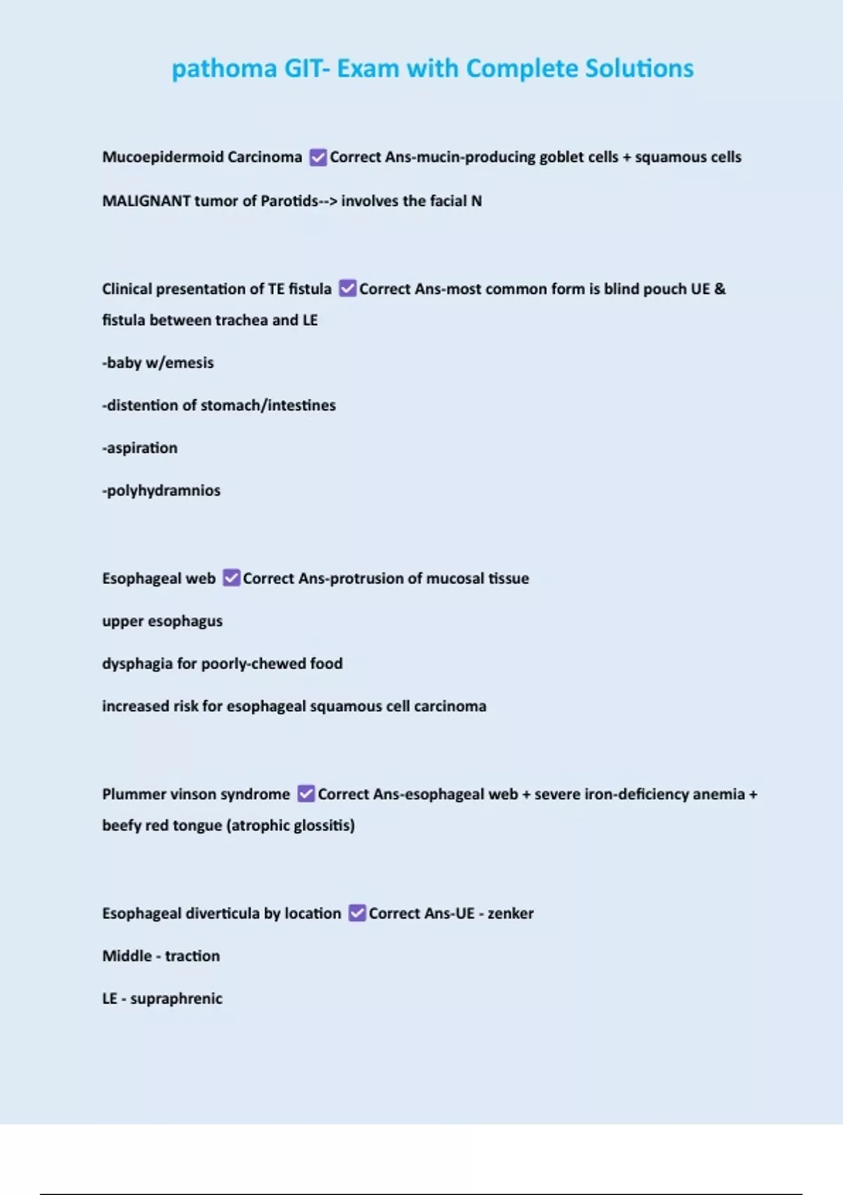 , pathoma GIT- Exam with Complete Solutions