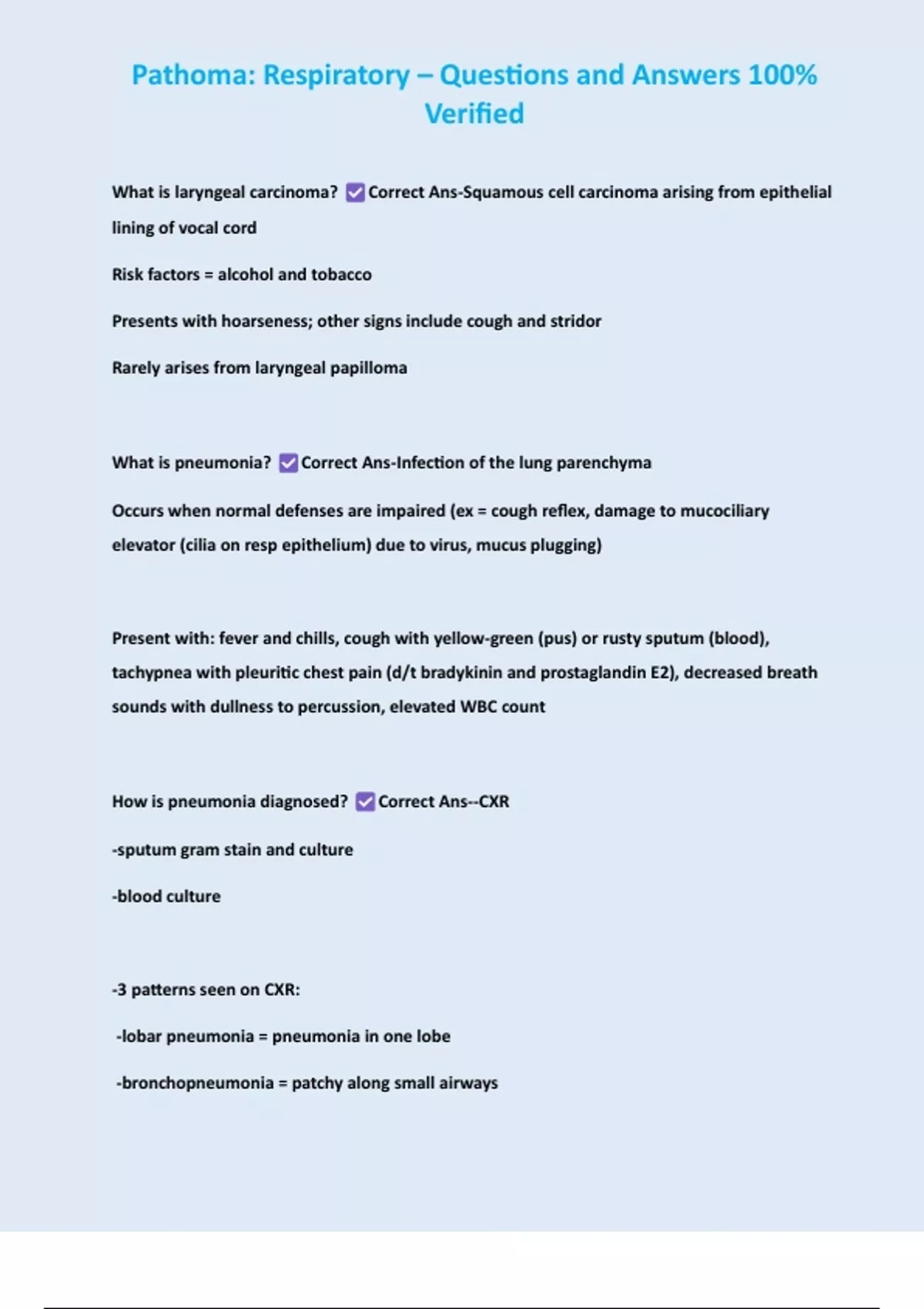 What is pneumonia? Correct Ans-Infection of the lung parenchyma