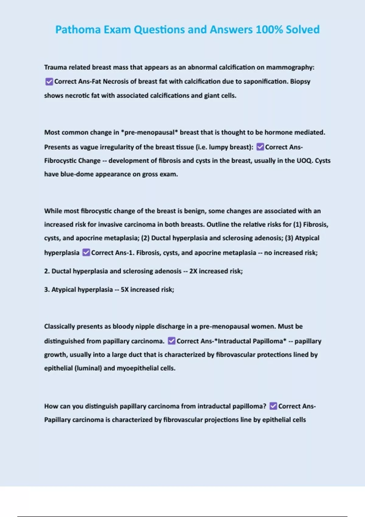 Pathoma Exam Questions and Answers 100% Solved