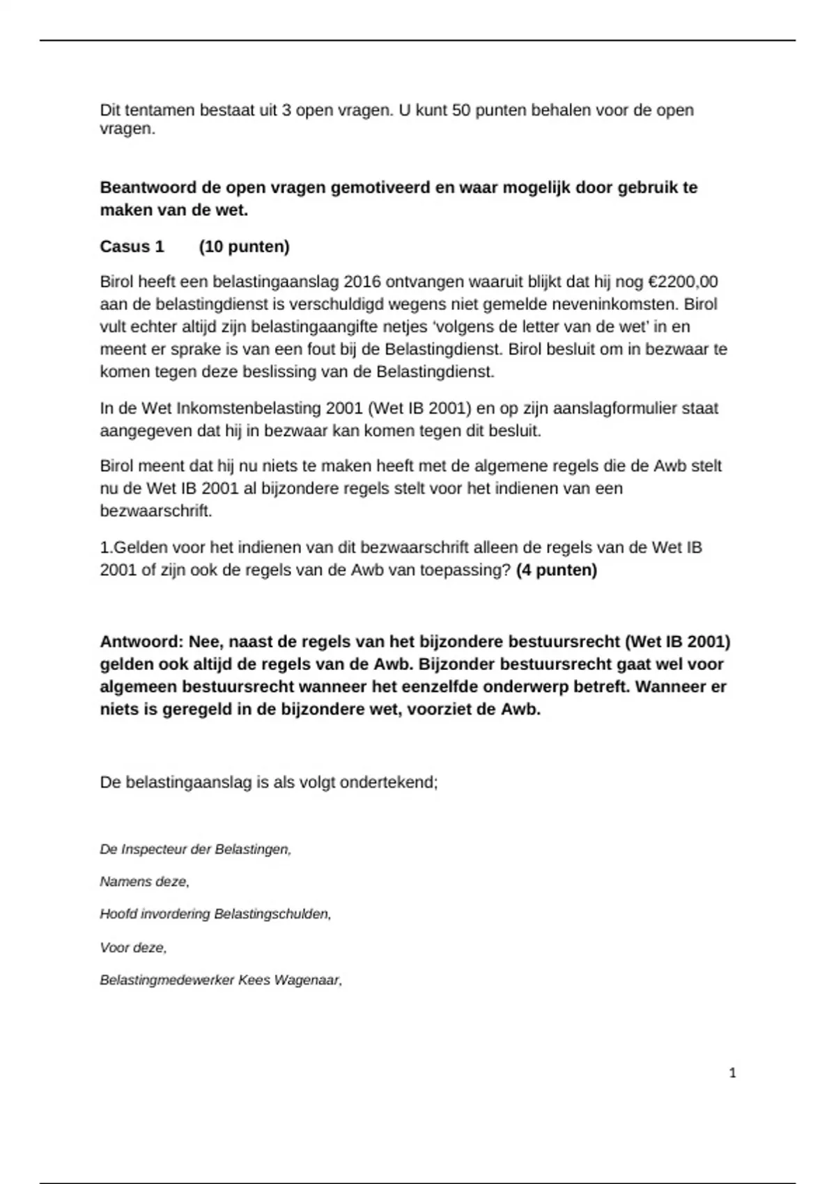 Antwoord: Nee, naast de regels van het bijzondere bestuursrecht (Wet IB 2001)