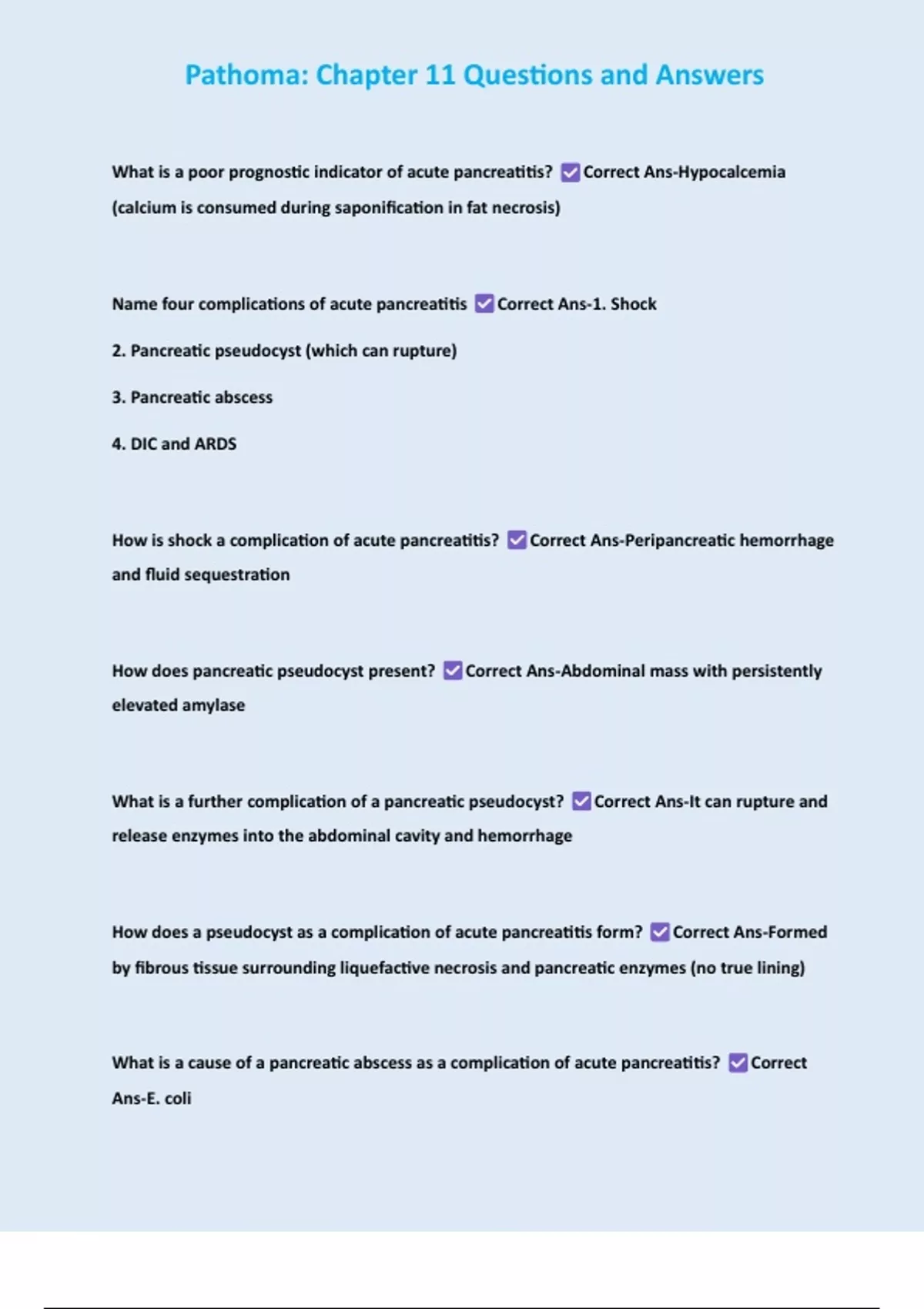 Name four complications of acute pancreatitis Correct Ans-1. Shock