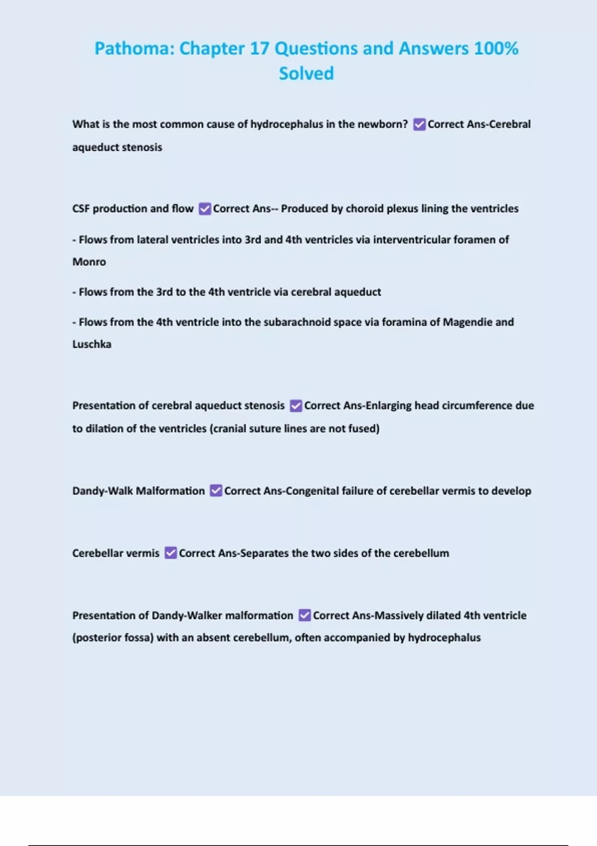 Pathoma: Chapter 17 Questions and Answers 100% Solved