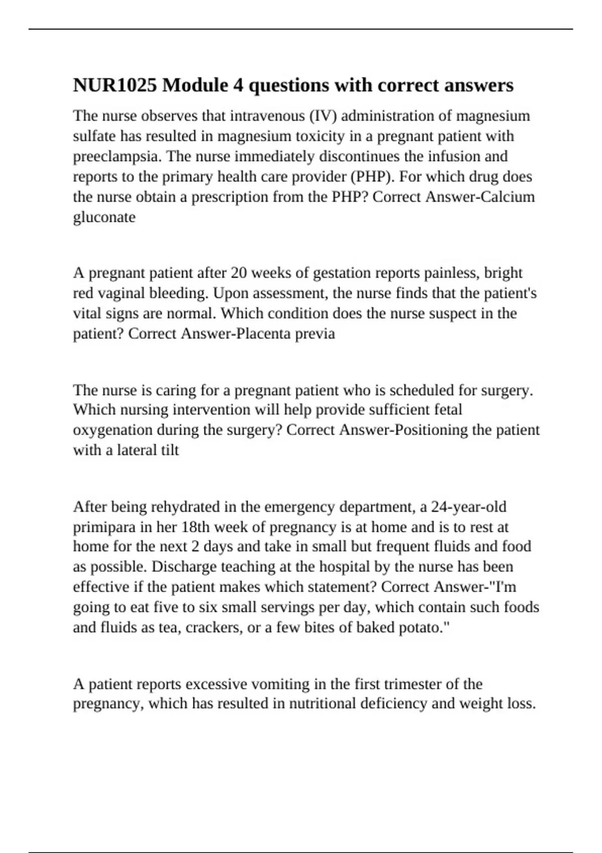 patient? Correct Answer-Placenta previa