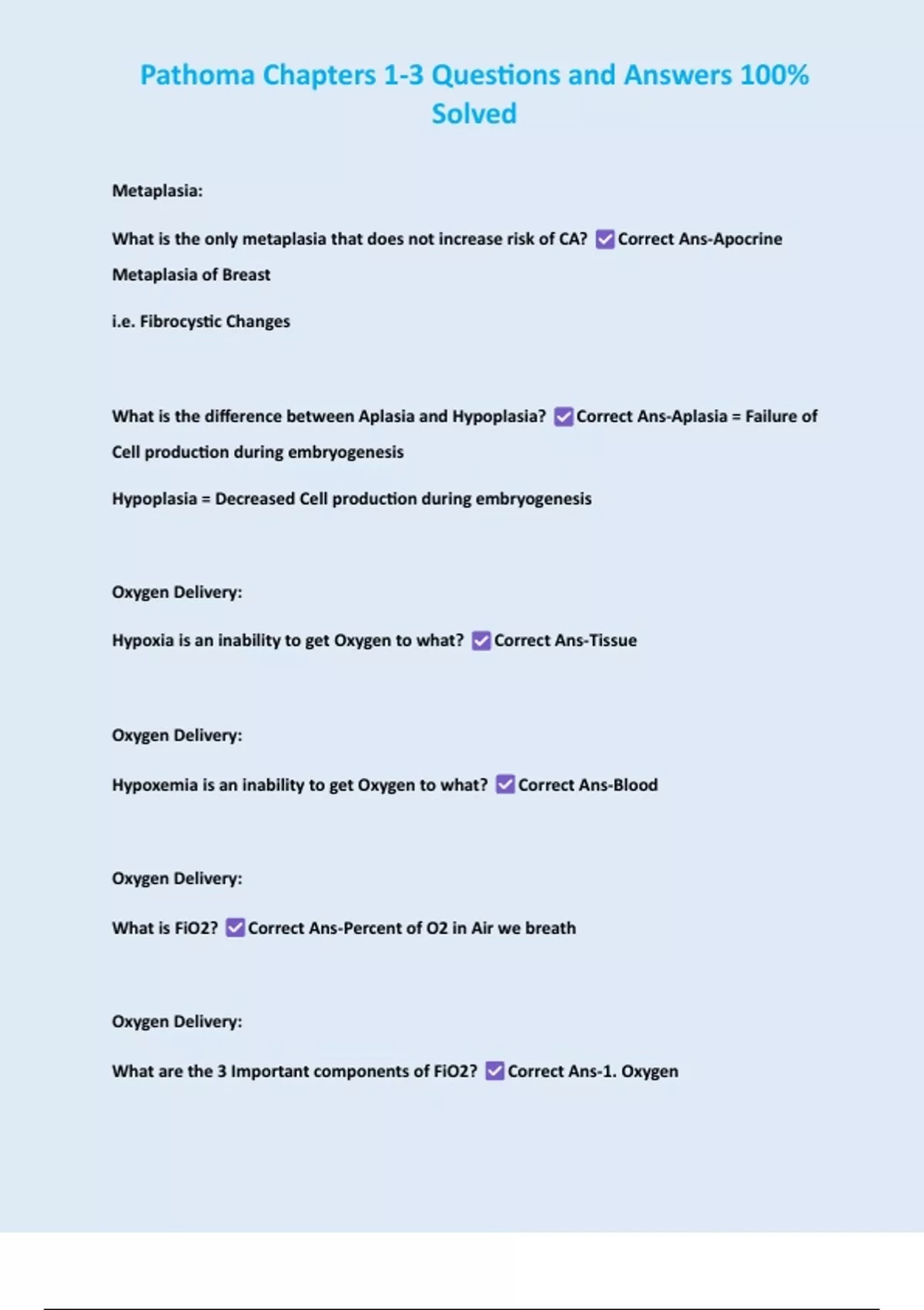 , Pathoma Chapters 1-3 Questions and Answers 100%