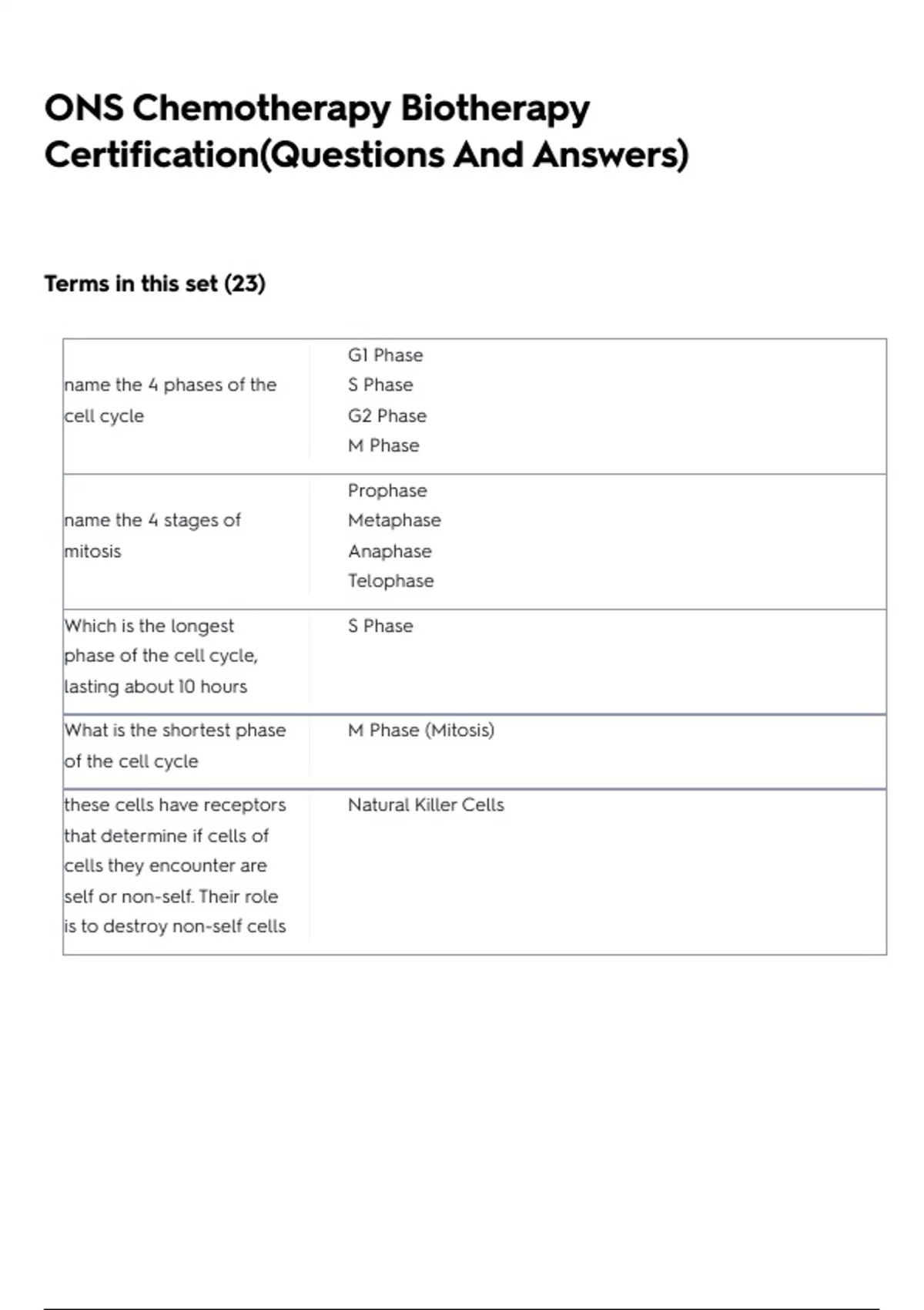 ONS Chemotherapy Biotherapy Certification(Questions And Answers)