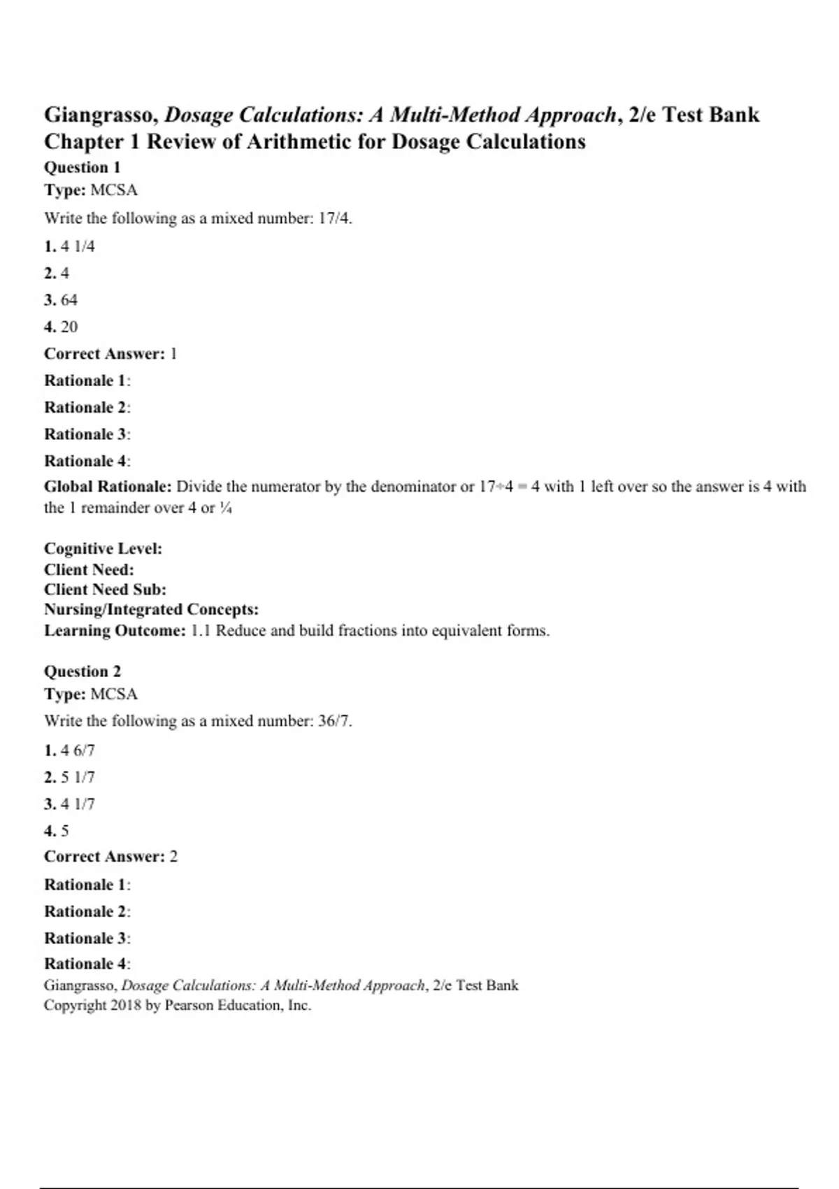 Test Bank - Dosage Calculations: A Multi-Method Approach, 2nd edition (Giangrasso, 2018) Chapter 1-12 | All Chapters