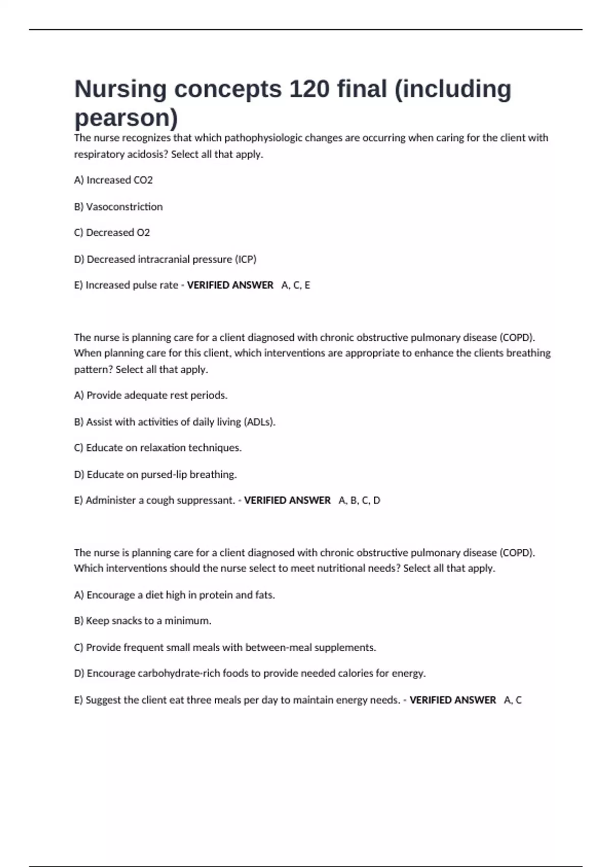 ,The nurse is providing care to a client diagnosed with chronic obstructive pulmonary disease (COPD)